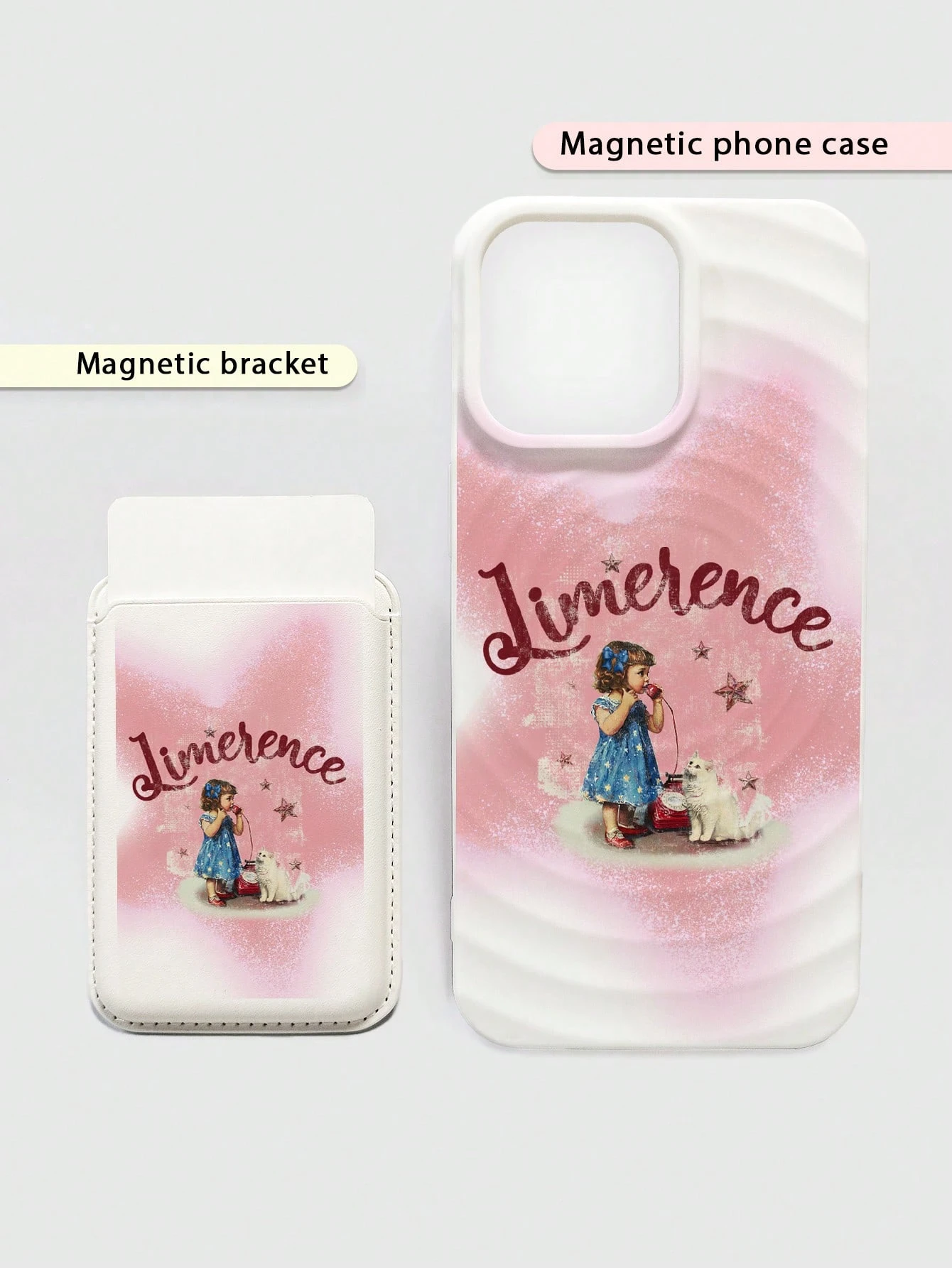 Kawaii 2 غطاء هاتف مغناطيسي لهواتف آيفون بطبعة فتاة و قطة و نجوم، شحن السلكي مقوي مغناطيسيًا، حامل بطاقات النجوم