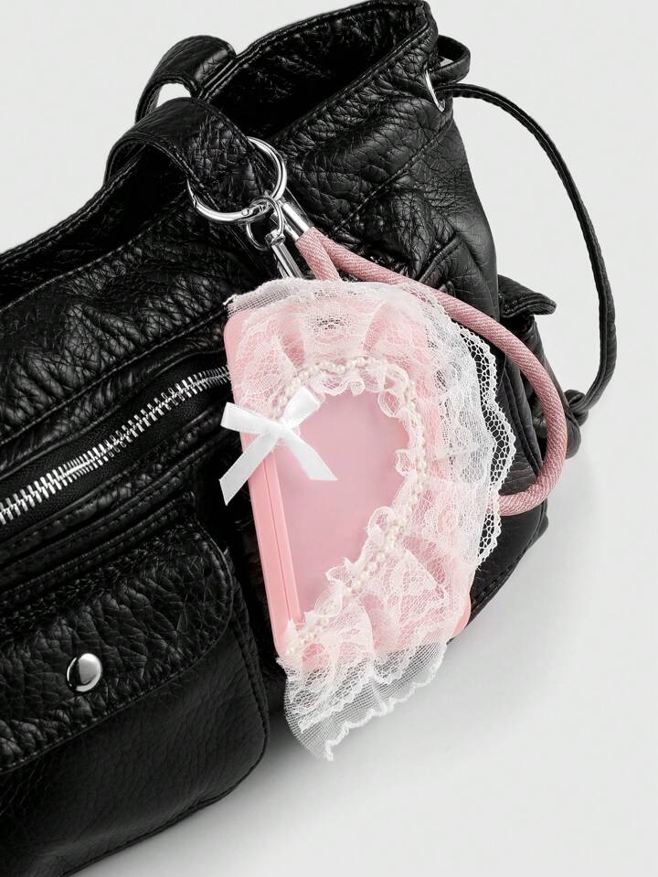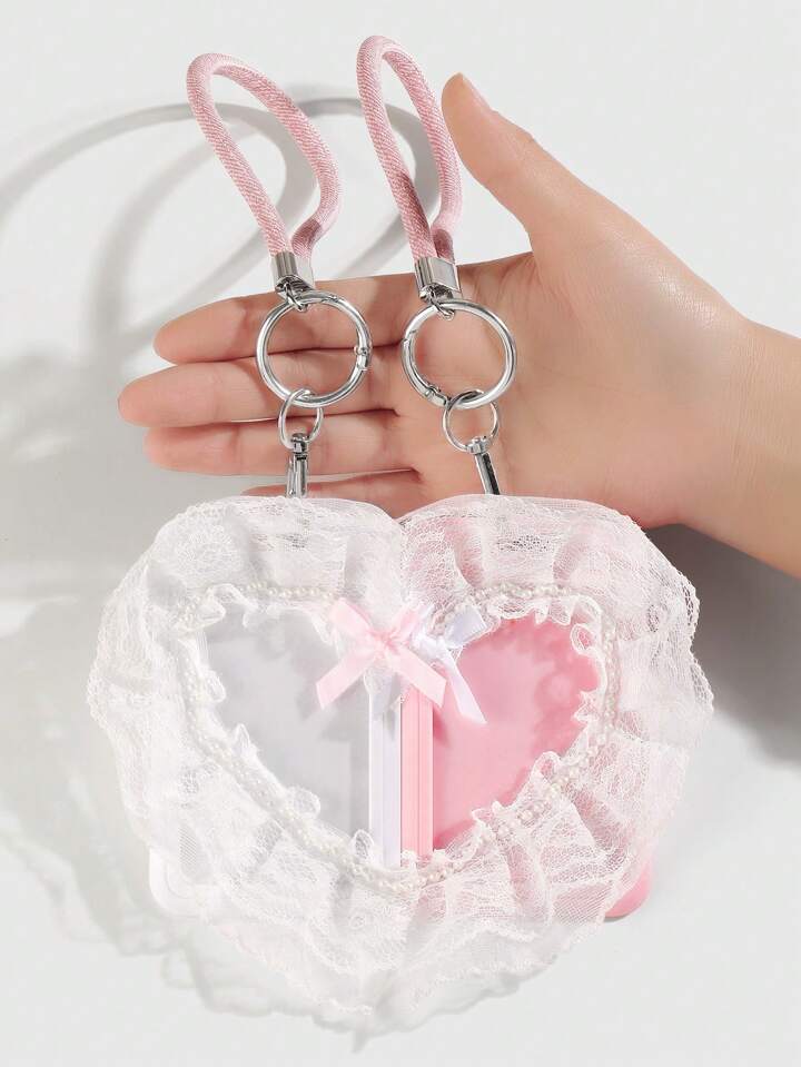 Kawaii مجموعة هدية مدهشة تتكون من 2 قطعة، حامل بطاقات مزين بالدانتيل والخرز واقفال مفاتيح بتصميم قلب كوري أنيق وبسيط، مناسب للموظفين والطلاب والاستخدام اليومي والهدايا المناسبة للمناسبات