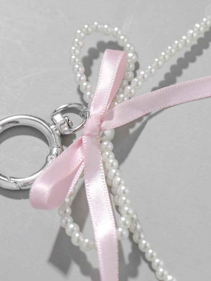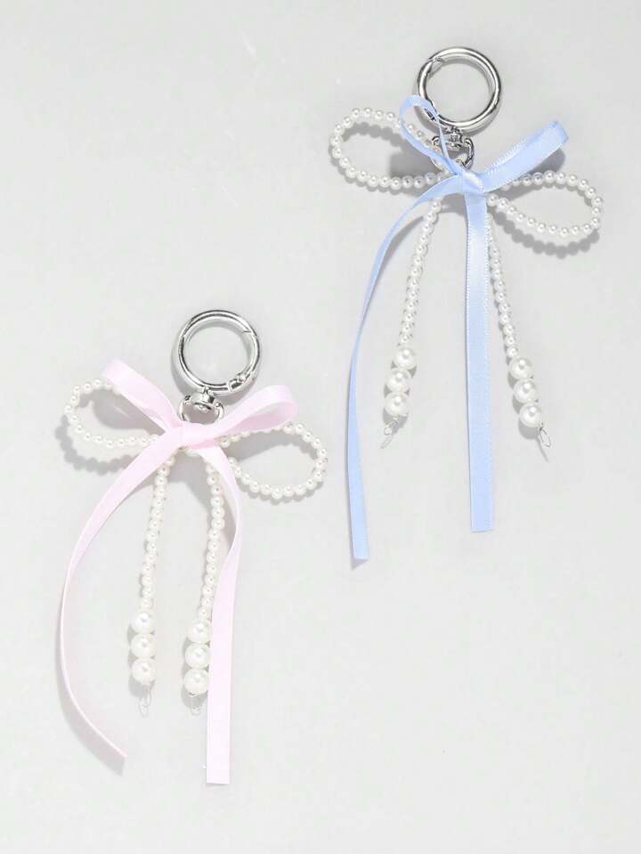 Kawaii مجموعة مكونة من قطعتين تحتوي على سلسلة مفاتيح وترويسة بشكل عقدة الفراشة وردي وأزرق مزين بخرز ولؤلؤ اصطناعي مصنوع يدويًا على النمط الكوري الرائع والجذاب للنساء / الفتيات الأصدقاء المقربين مع مكونات للهاتف المحمول وحلقة المفاتيح بمناسبة مثالية للهدايا الاحتفالية