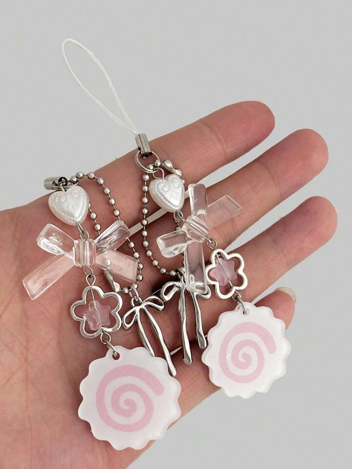 Kawaii مجموعة من 2 قلادة مفتاح وردية جميلة بتصميمات زهرية وعقدة فراشة وحلزونية، للتزيين على الحقائب والهواتف، مناسبة لهدايا عيد الحب وعيد الميلاد والتخرج والعودة للمدرسة للبنات