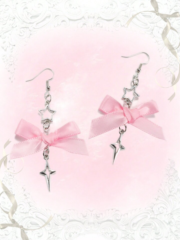 Kawaii حلقانان بأشكال وألوان الألوان الزاهية والنجوم على شكل قوس ونجمة في الستايل Y2k