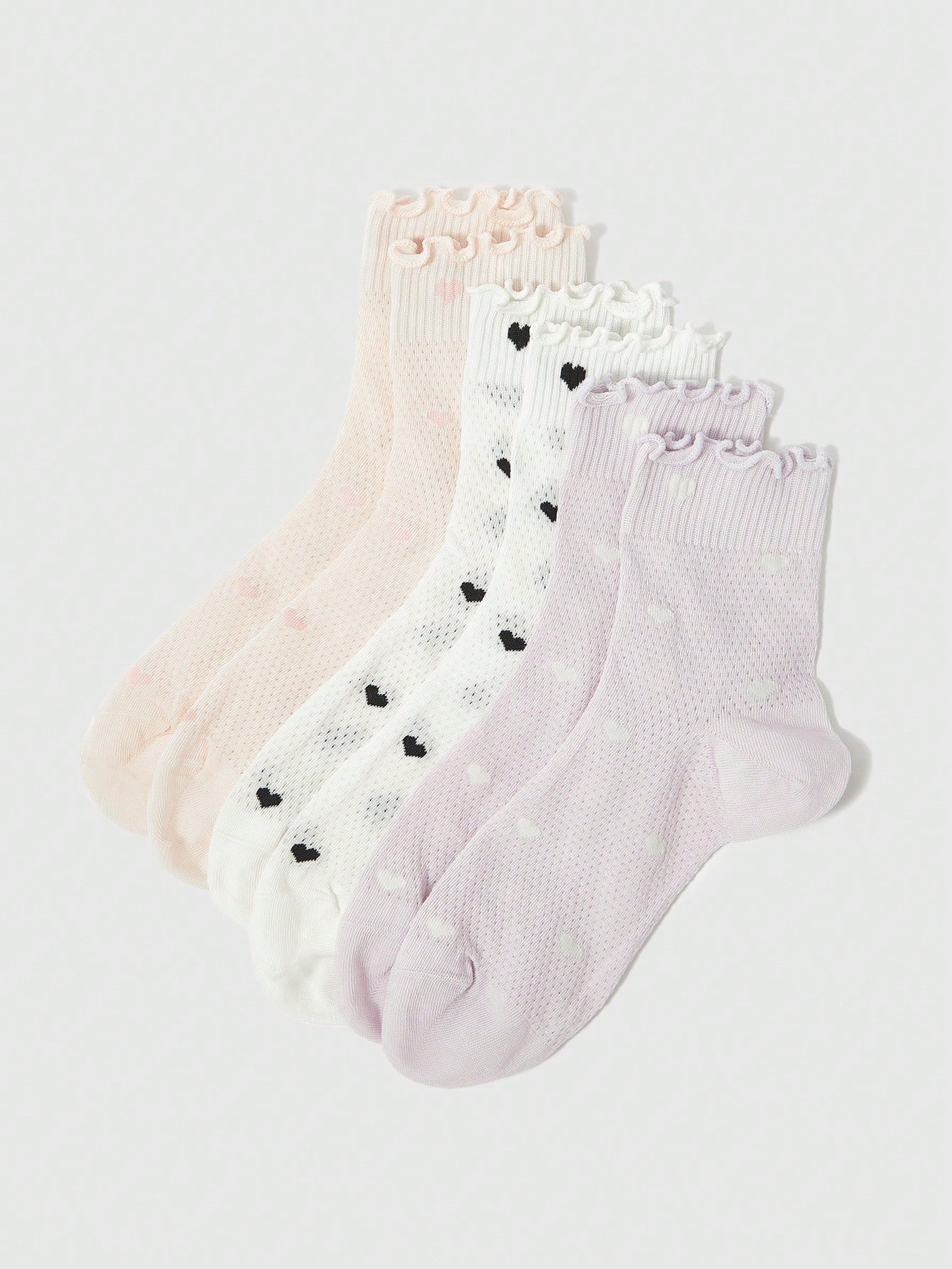 Kawaii 3 أزواج جوارب قصيرة للكاحل عشوائية الألوان بتطريز دانتيل ، جوارب شبكية بقلوب جميلة ، جوارب نسائية بتصميم كتلة الألوان من طراز الكلية ، جوارب شبكية قصيرة كرتونية يومية