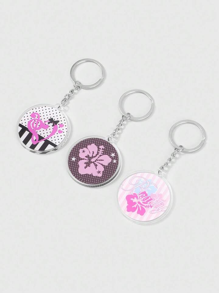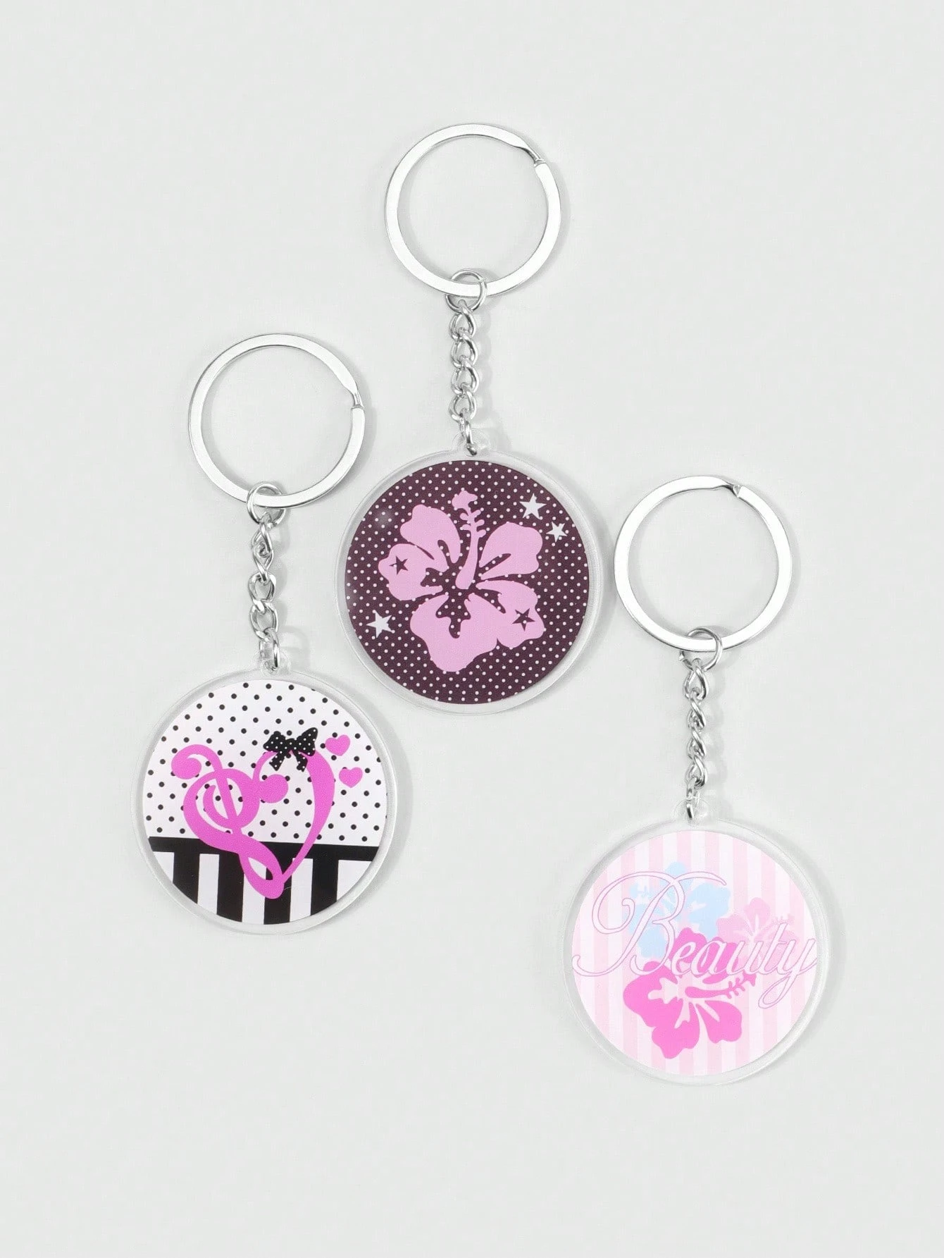 Kawaii 3 قطع سلسلة مفاتيح بشعار الملاحظة الموسيقية والزهرة