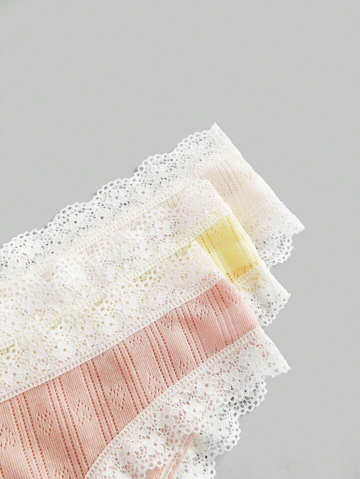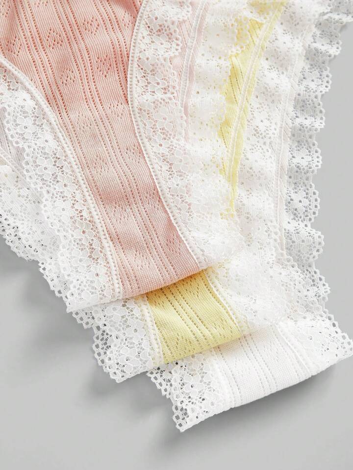 Kawaii 3 قطع/العبوة كريهات داخلية للنساء بخصر مزين بحواف الدانتيل والرقع على شكل قلب