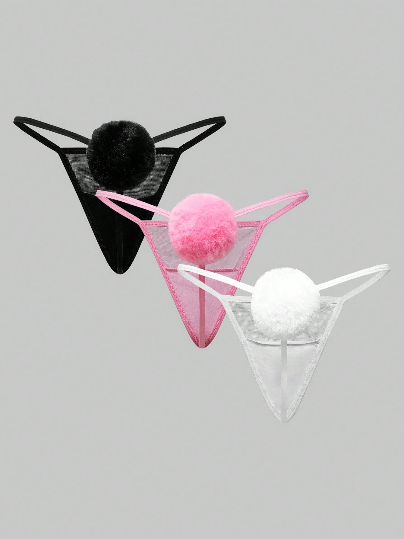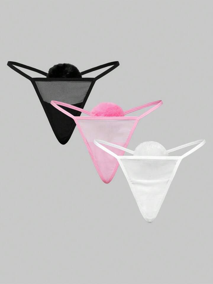 Kawaii مجموعة ملابس داخلية بتصميم أرنب وشبكة وذيل فرو، أحجام كبيرة، 3قطع