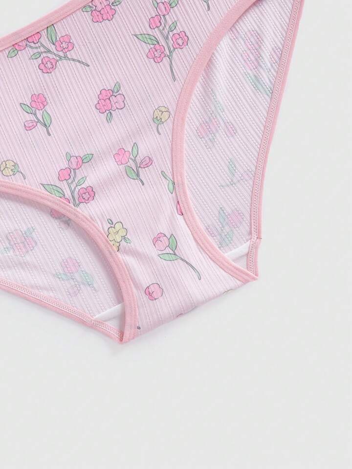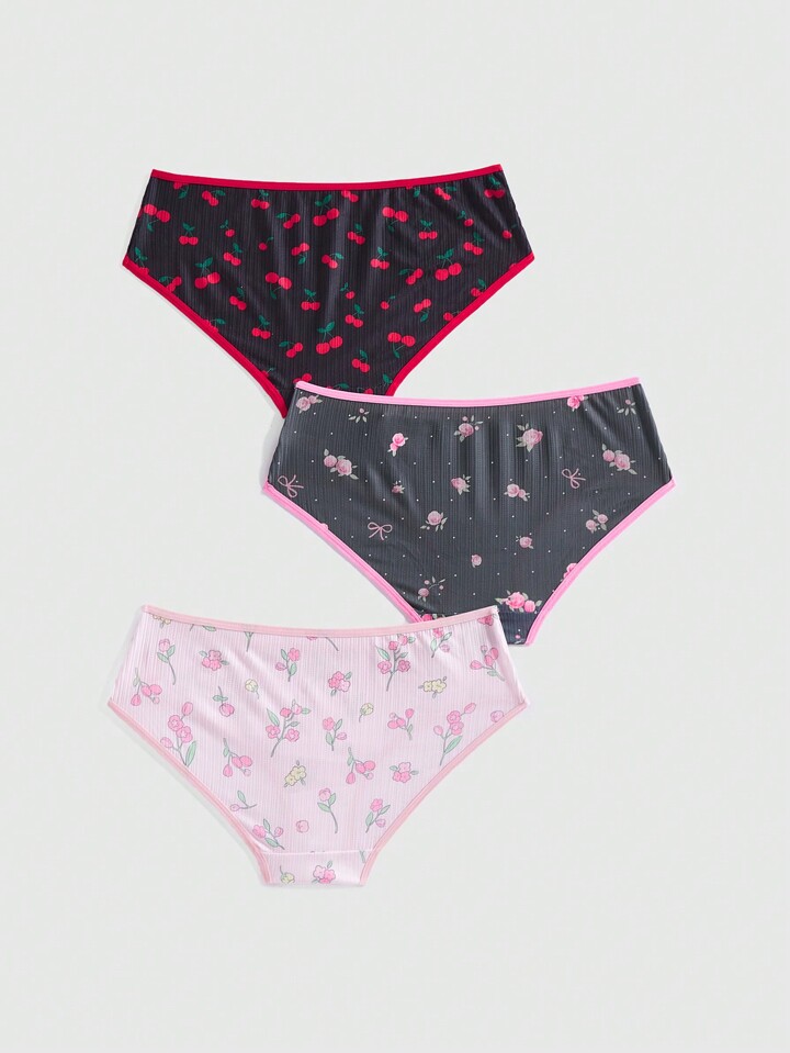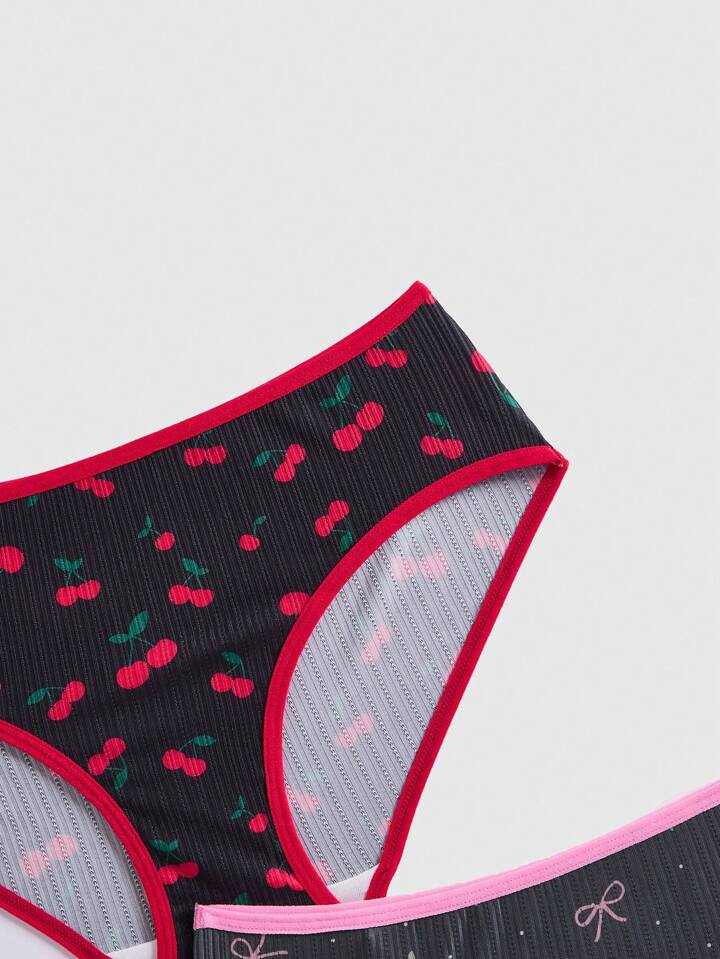 Kawaii مجموعة من ثلاثة ملابس داخلية قطعة واحدة مثلثة من الحرير الجليدي مع طبعات حمراء وزهور الكرز و الفراشة