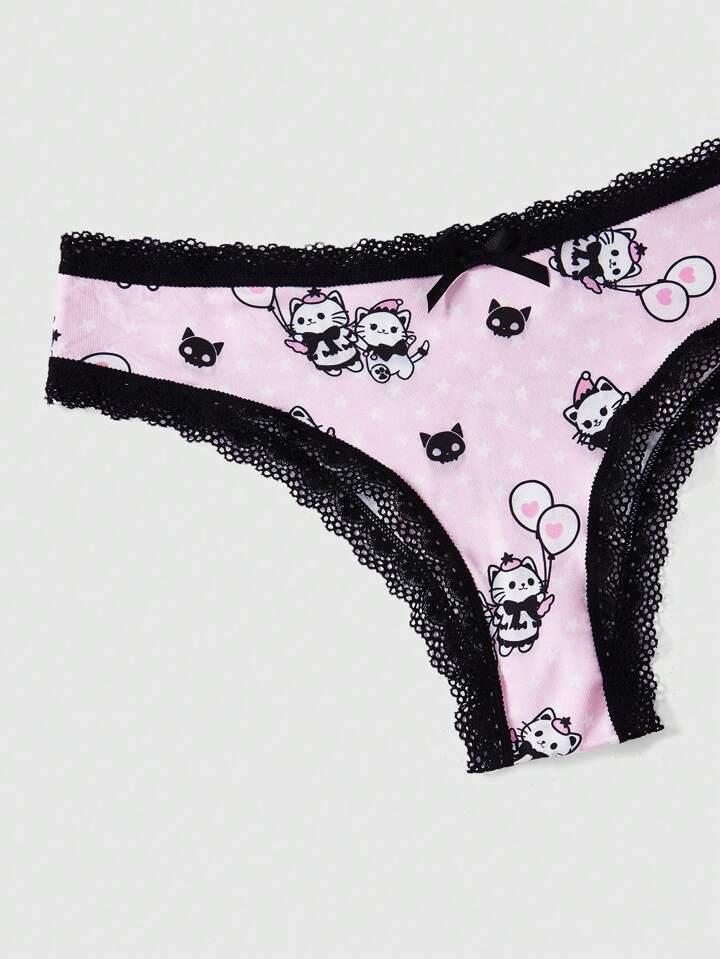 Kawaii 3قطع/مجموعة أنيقة أسفل مثلث للنساء بحواف دانتيلية