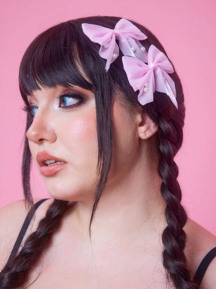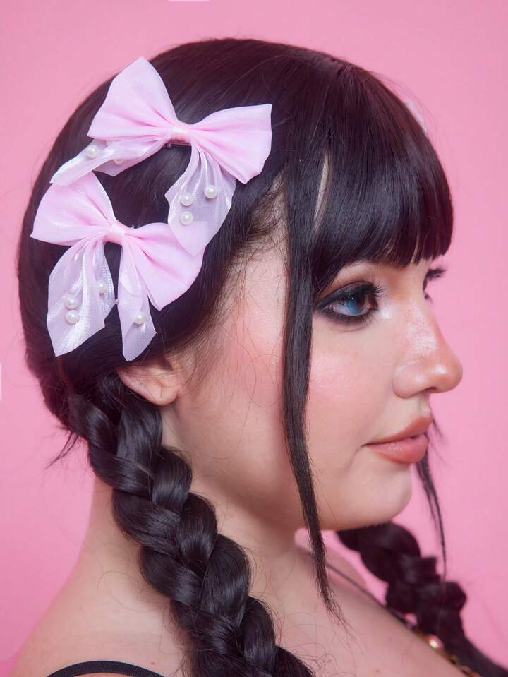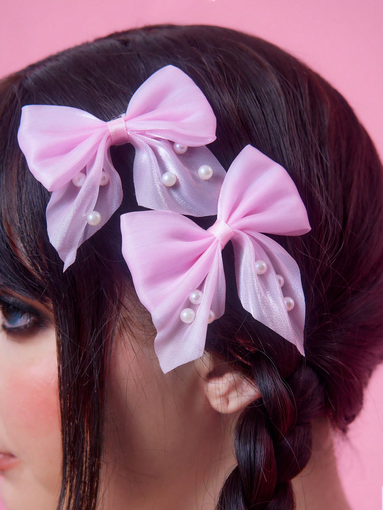 Kawaii 4 قطع من مشابك الشعر المزينة بالعقد والخرز ذات الفيونكة الأنيقة ، مشابك شعر من نوعية عالية باللون الوردي المتدرج مع تفاصيل الأمواج ، تصميم أنيق ومتعدد الاستخدامات لمشابك الشعر ، دبابيس للشعر