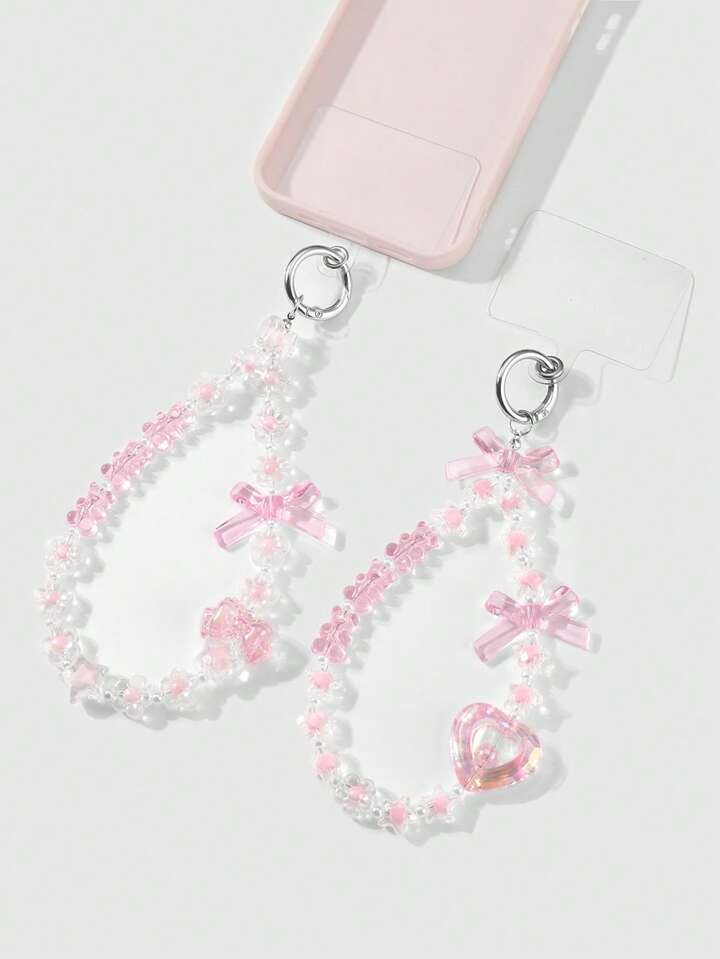 Kawaii 4 قطع مفاتيح جميلة وأنيقة متنوعة الاستخدام، مصنوعة يدويًا بخرز زائف شكل زهر الكرز، نجمة، فيونكة، قلب ، مجموعة تضم مفاتيح شفافة للهاتف/البطاقة ودبابيس الحقيبة، مناسبة للأخوات وأفضل الأصدقاء والأزواج لارتدائها يوميًا أو كهدية