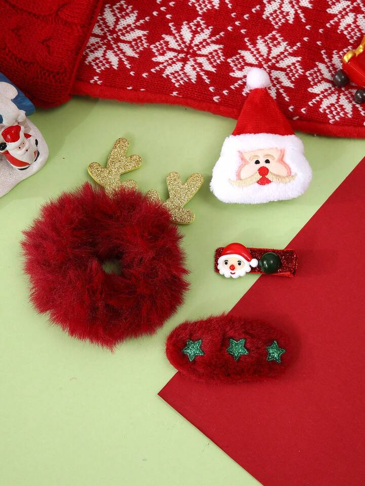 Kawaii 4 قطع / مجموعة مشابك شعر بنمط القديس نيقولا والنجوم للكريسماس