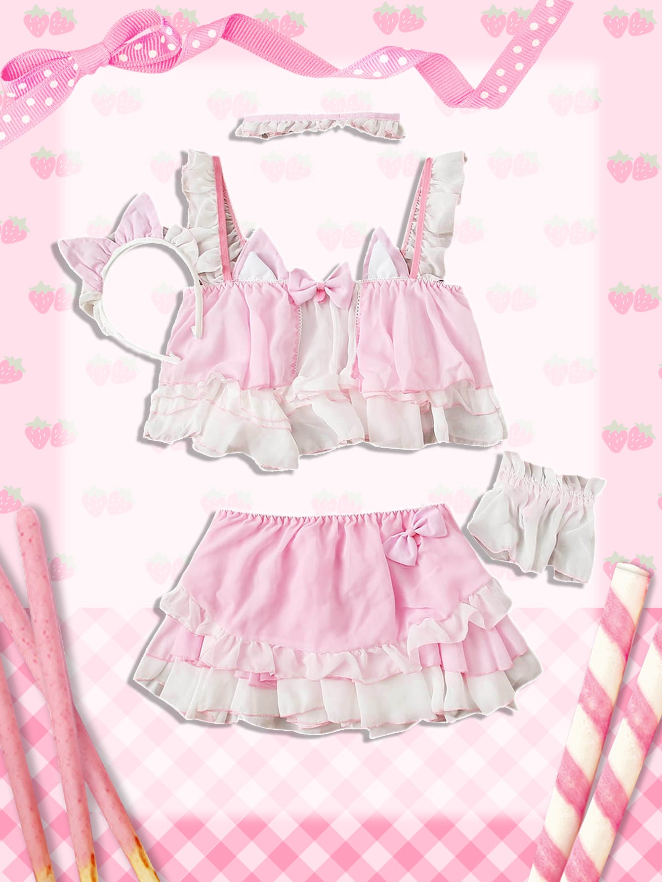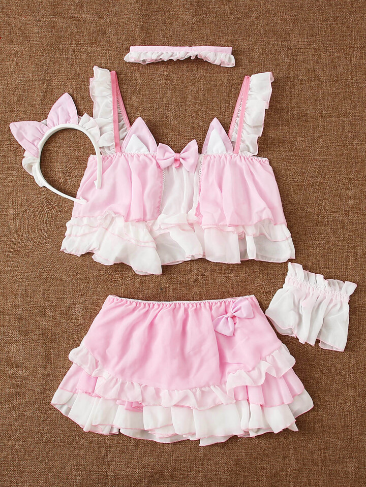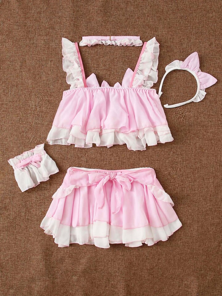 Kawaii طقم سكسي متوسط مكشكش طبقات 5 قطع