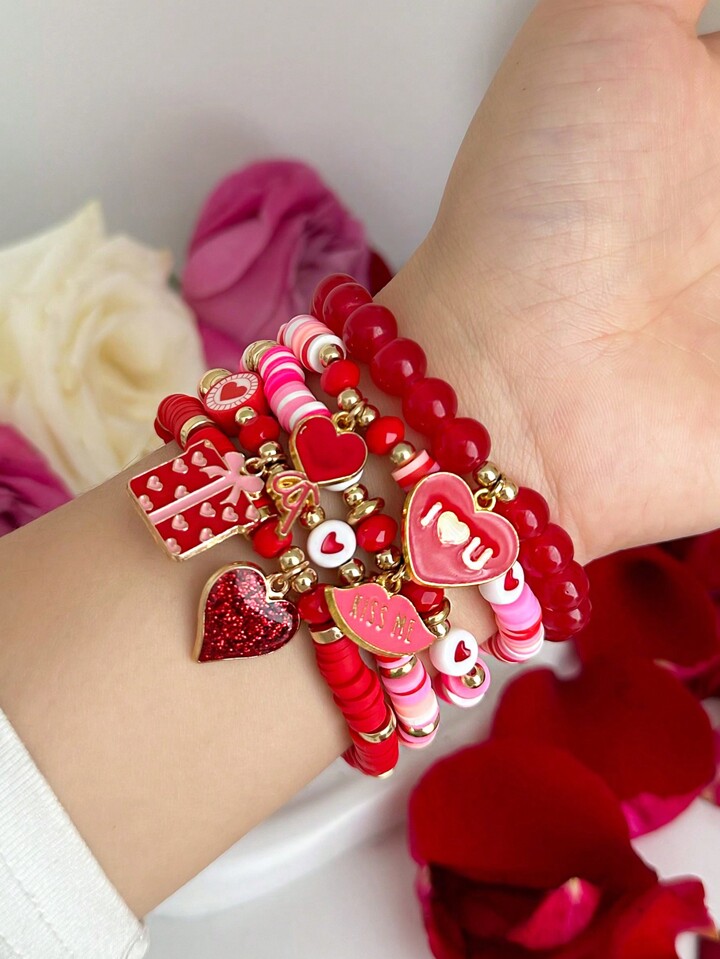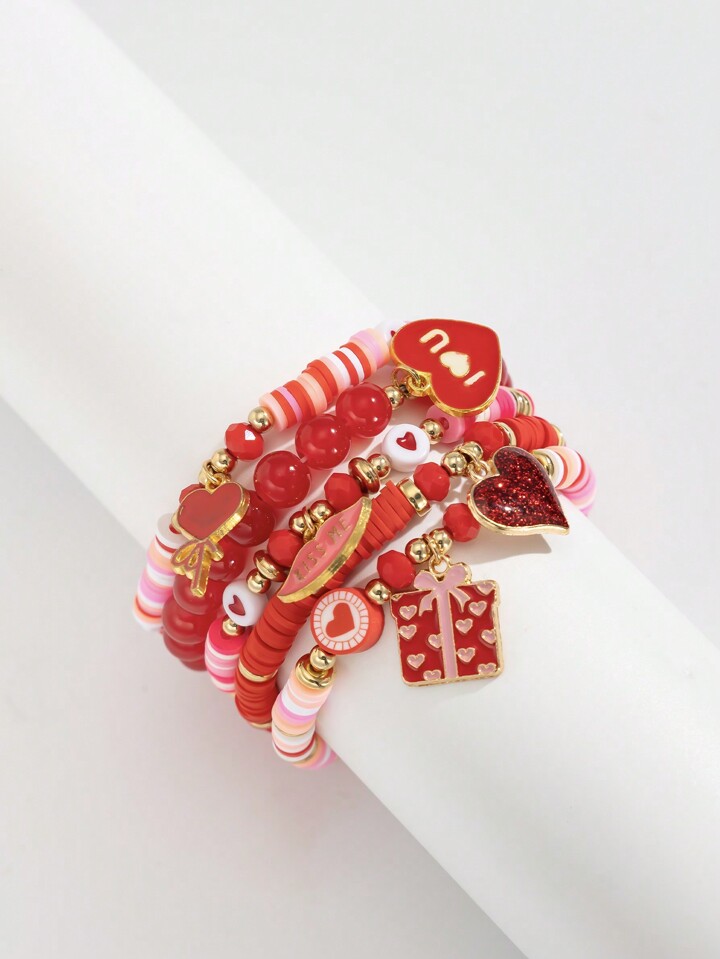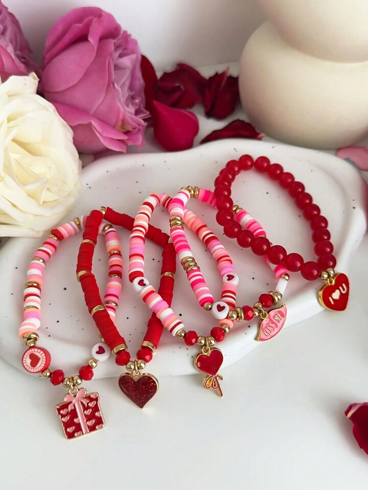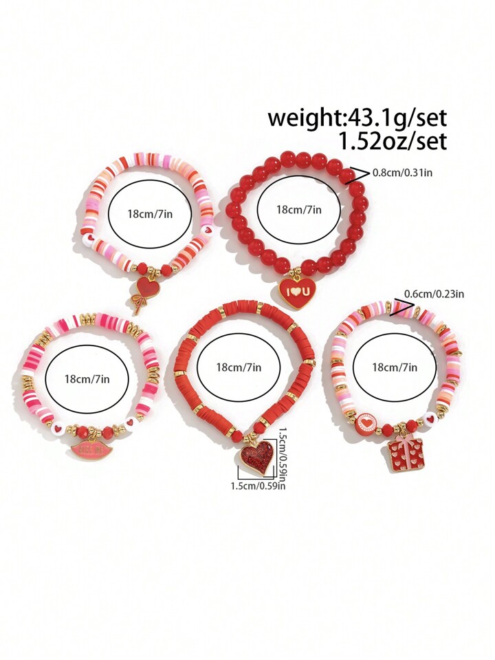 Kawaii 5 قطع أساور طينة پوليمرية جميلة على شكل قلب عصرية من طراز Y2K ، هدية للعائلة والأصدقاء في عيد الحب ، للأم ، عيد الأم ، هدية