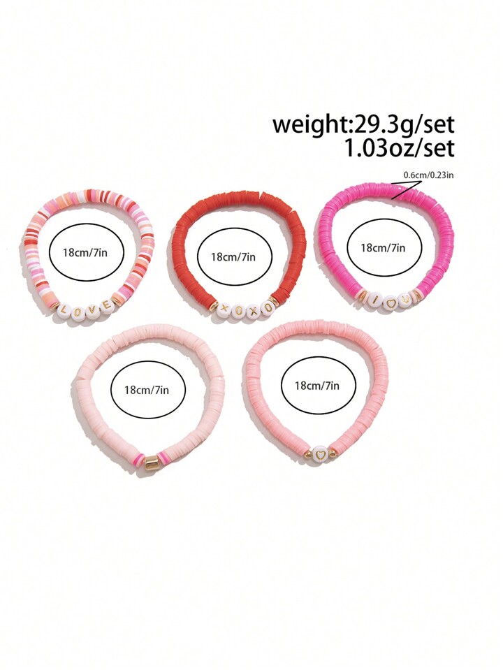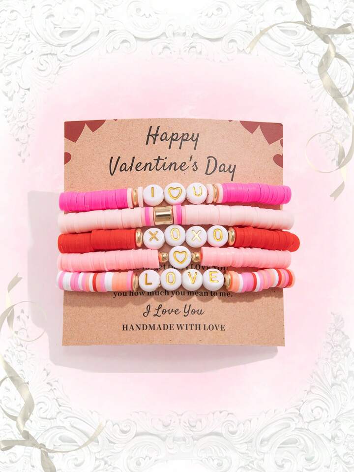 Kawaii 5 قطع/مجموعة سوار باشدي XOXO/حروف حب، هدية مجوهرات رومانسية للنساء في عيد الحب