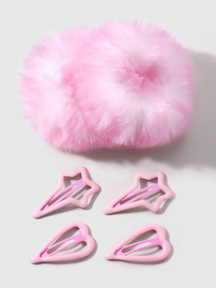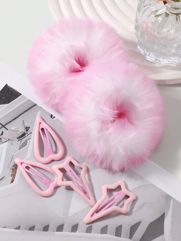 Kawaii 6 حبات/مجموعة كوريالية أنيقة شرائط الشعر الفوشيه متعددة الاستخدامات وديكور الشعر بالوردي أومبري بالإضافة إلى مشابك شعر بشكل قلوب نيزكية، مجموعة مناسبة لنساء وفتيات للاستخدام اليومي وللهدايا