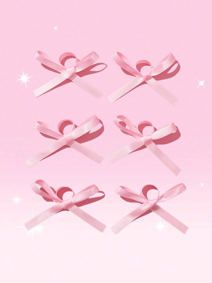 Kawaii عصابة شعر موحدة اللون مزخرف بعقدة الفراشة 6 قطع نساء