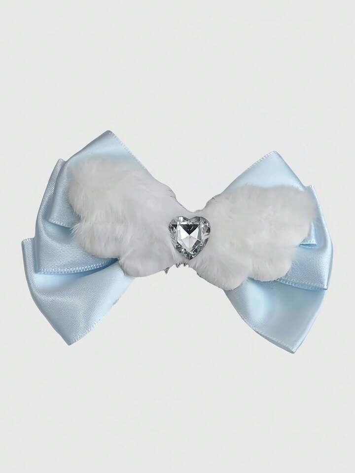 Kawaii دبابيس شعر شكل أجنحة ملاك أزرق سماوي بفيونكة، دبابيس شعر شكل ذيل حصان مزدوج كيوت، إكسسوارات شعر بلون أزرق ملح البحر