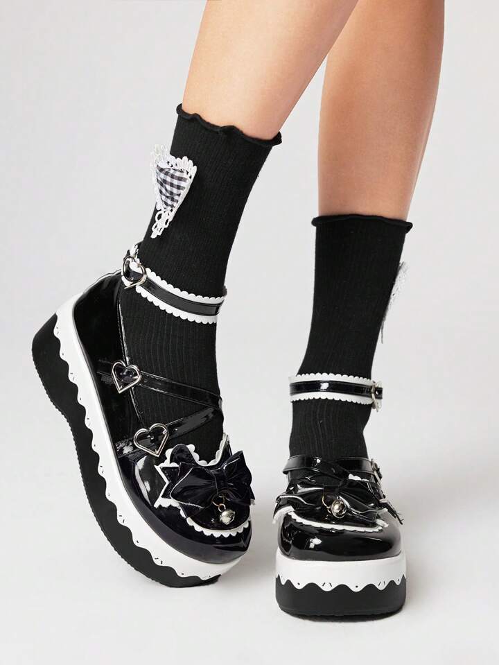 Kawaii أحذية ماري جين السوداء من الجلد، أحذية لولونا مربوطة بأشرطة مع إصبع القدم المغلق، أحذية غوثيك مزينة بالريش بطراز Y2K، أحذية منصة نسائية ذات سُمك قاعدة
