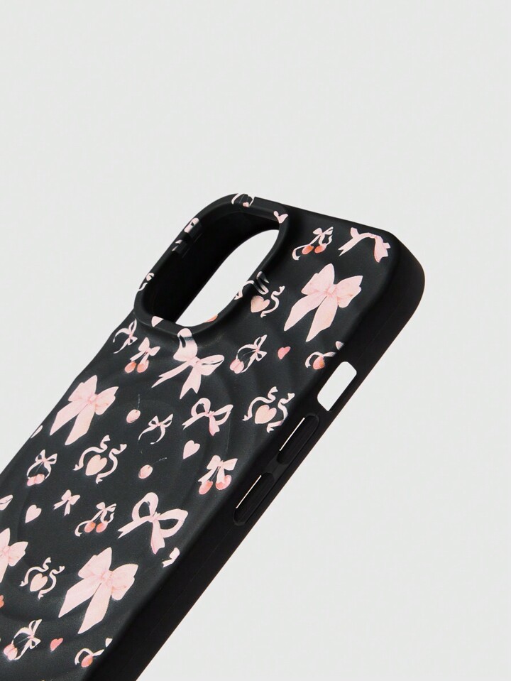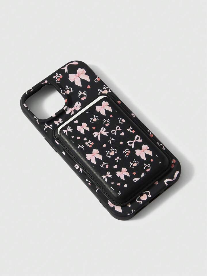 Kawaii غطاء هاتف بطبعة الخصر والكرز مع تأثير مغناطيسي للشحن اللاسلكي، وجيب بطاقات بنفس النمط