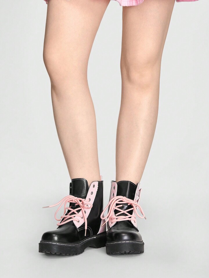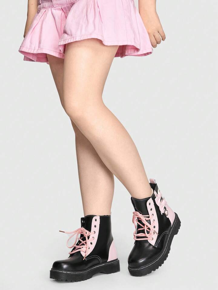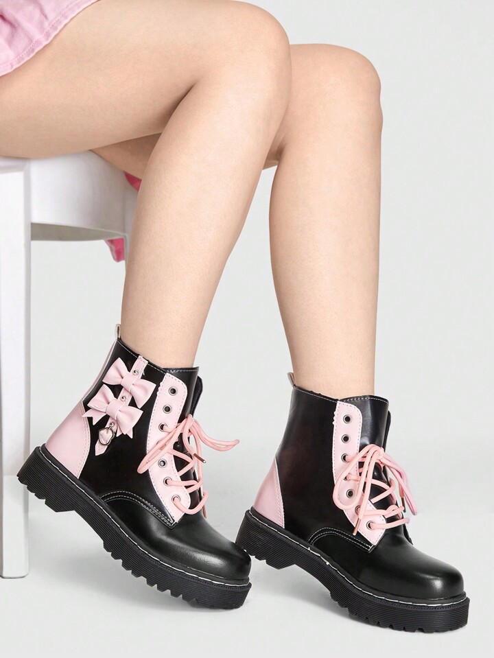 Kawaii جزمة بوت إلى الكاحل مزخرف بعقدة الفراشة رباط امامي