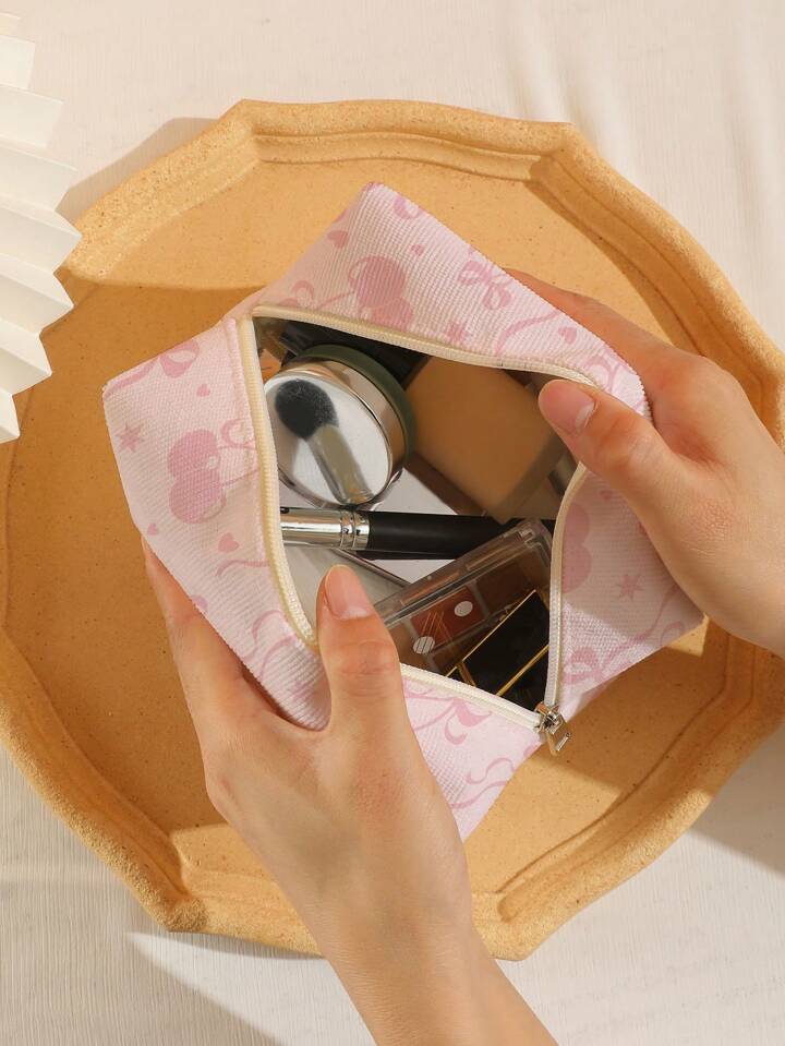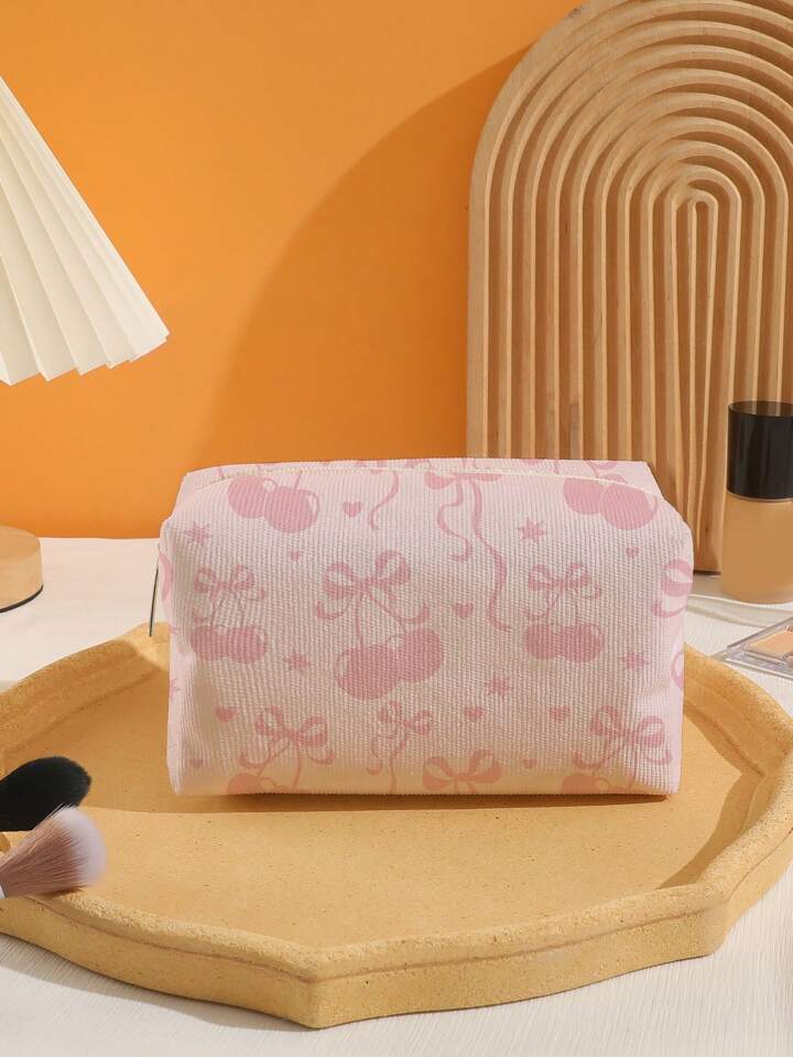 Kawaii حقيبة مستحضرات التجميل المخملية ثمانية الأوجه بنمط فراشة وكرز