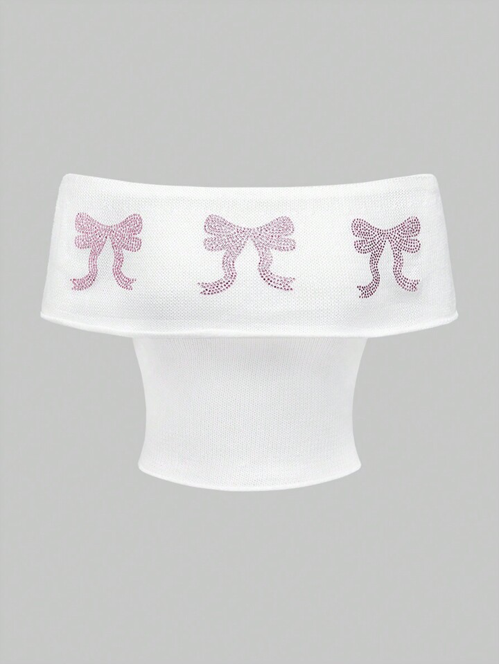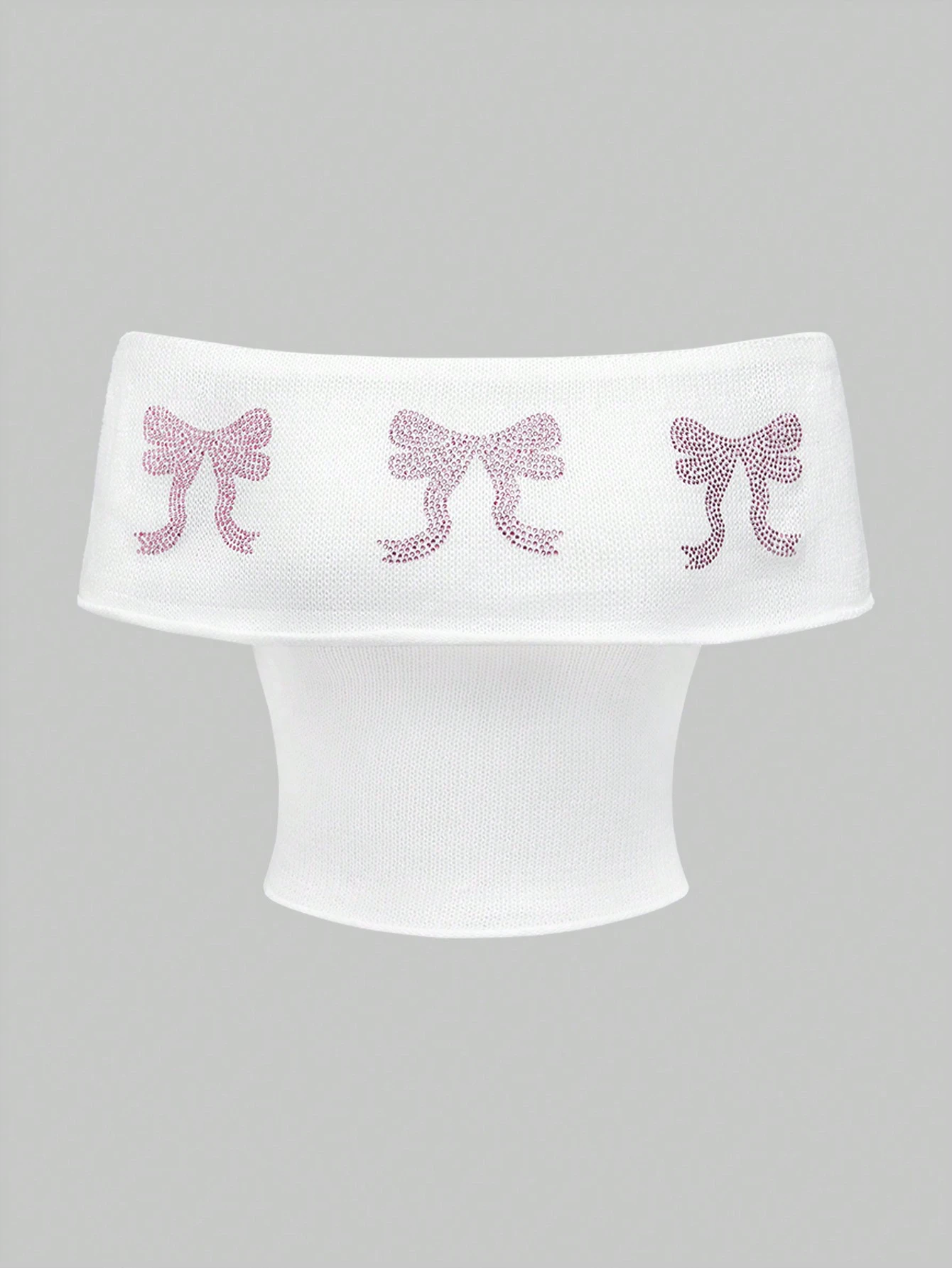 Kawaii ملابس علوية محبوكة بنمط القوس و منطقة الكتف العارية