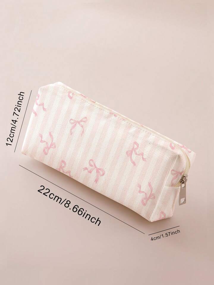Kawaii علبة قلم رصاص مطبوعة بنمط الفراشة على الوجهين مزينة بالفيونكة، عودة للمدرسة، مستلزمات مدرسية