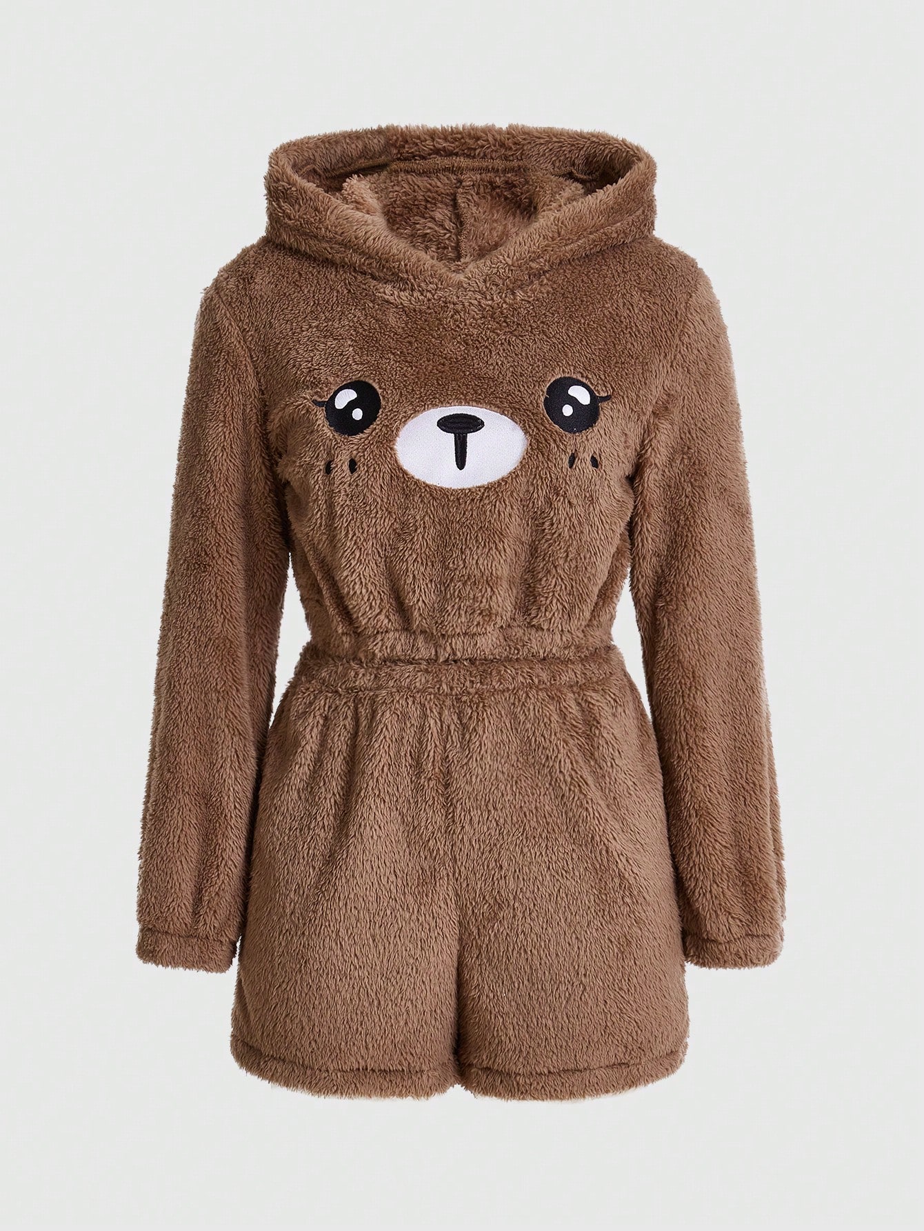 Kawaii طقم بيجامة مطرز برسوم كارتون بتصميم آذان ثلاثية الأبعاد قبعة فانيلا
