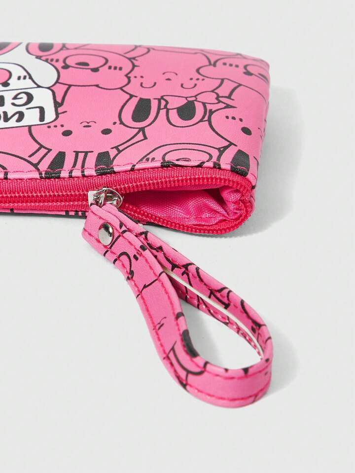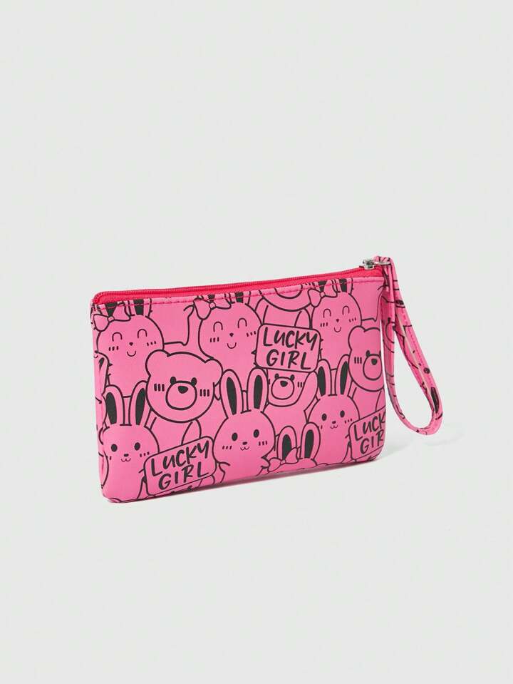 Kawaii حقيبة كوزميتك نسائية بسعة كبيرة من الجلد السميك كاملة الطباعة بشكل دب وأرنب كرتونية وردية ومخملية 341328