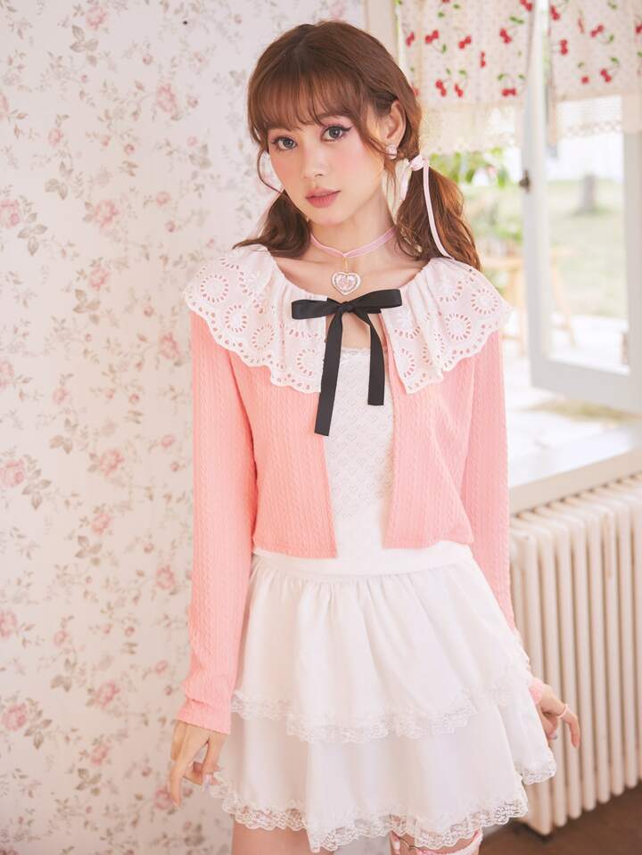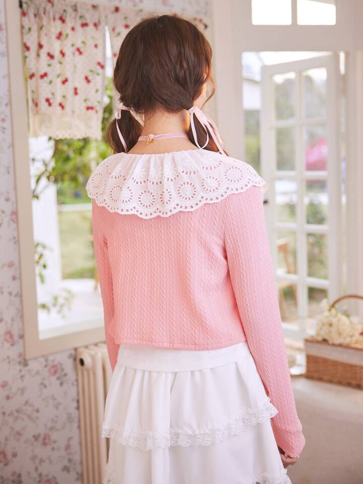 Kawaii لباس علوي متباين ياقة كبير مبالغ فيه ربطة امامية