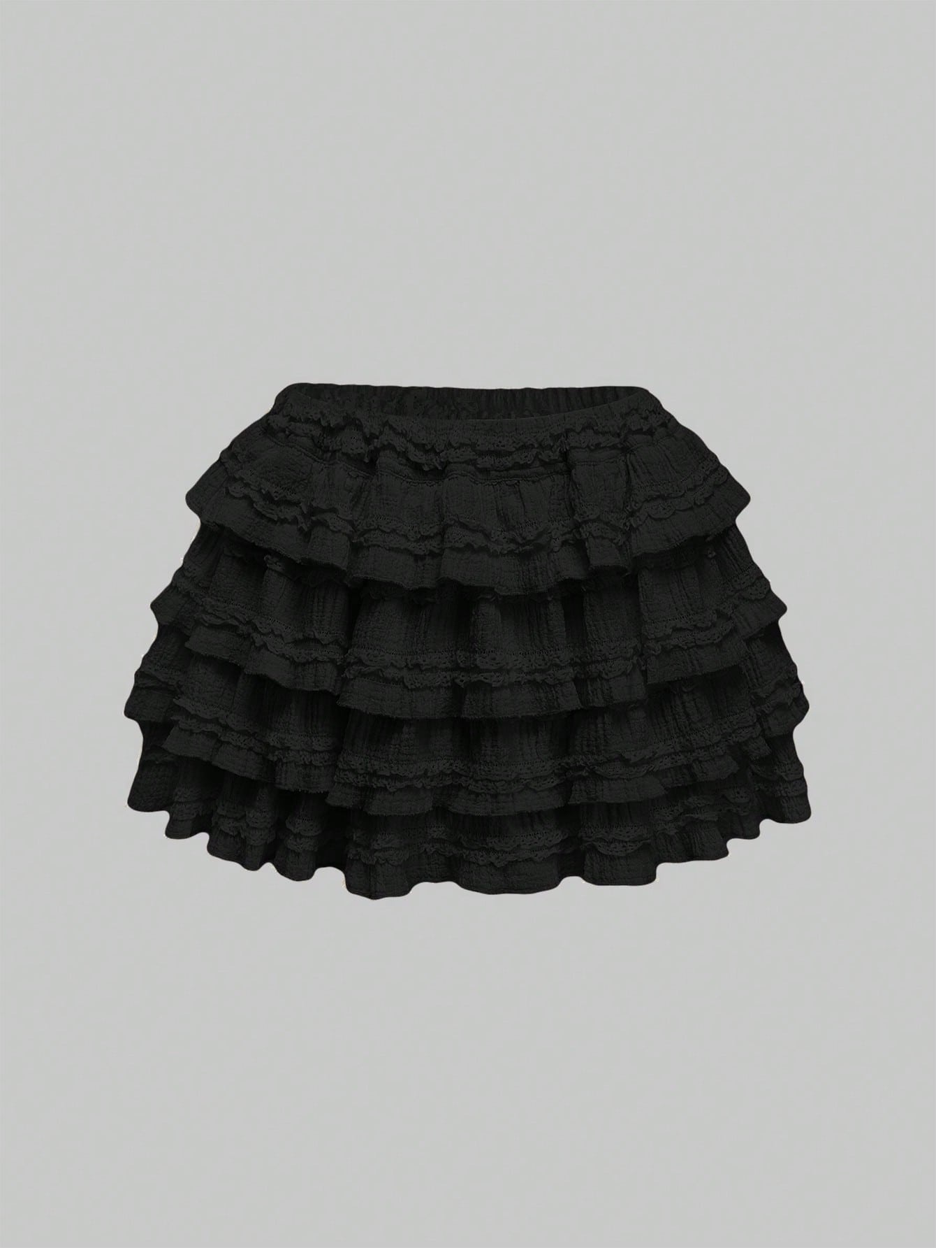 Kawaii تنورة ميني ذات طبقات للخصر مصنوعة من قماش ذو قوام ملمس كريمي أصفر، مناسبة لمختلف المناسبات للنساء
