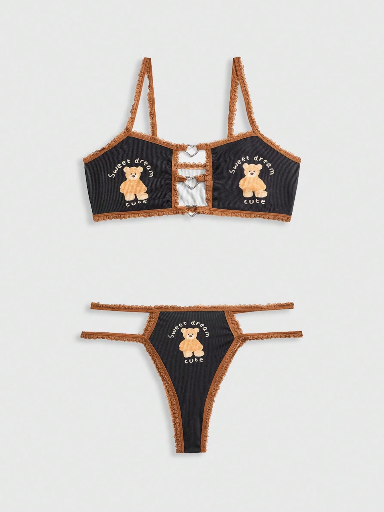 Kawaii مجموعة حمالة صدر لاسلكية معدنية بتصميم قلب مرقع بالدانتيل الأنيق للنساء