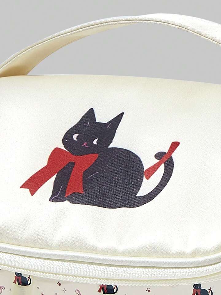 Kawaii حقيبة تجميل شفافة ذات سعة كبيرة محمولة بفيونكة بيج وقطة سوداء 1440731