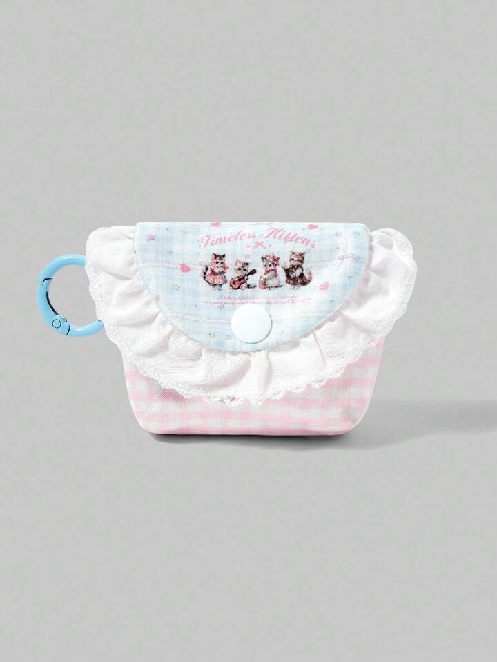 Kawaii محفظة صغيرة محمولة لبيض البيض الأقراط المطبوع بطباعة الشريط الأبيض الدانتيل للقطط الجميلة