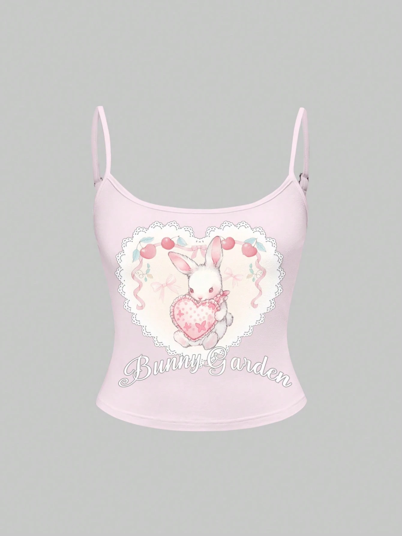Kawaii خاطف الأنظار - نمط الأرنب الوردي الرقيق كديكور على سترة صيفية للسيدات