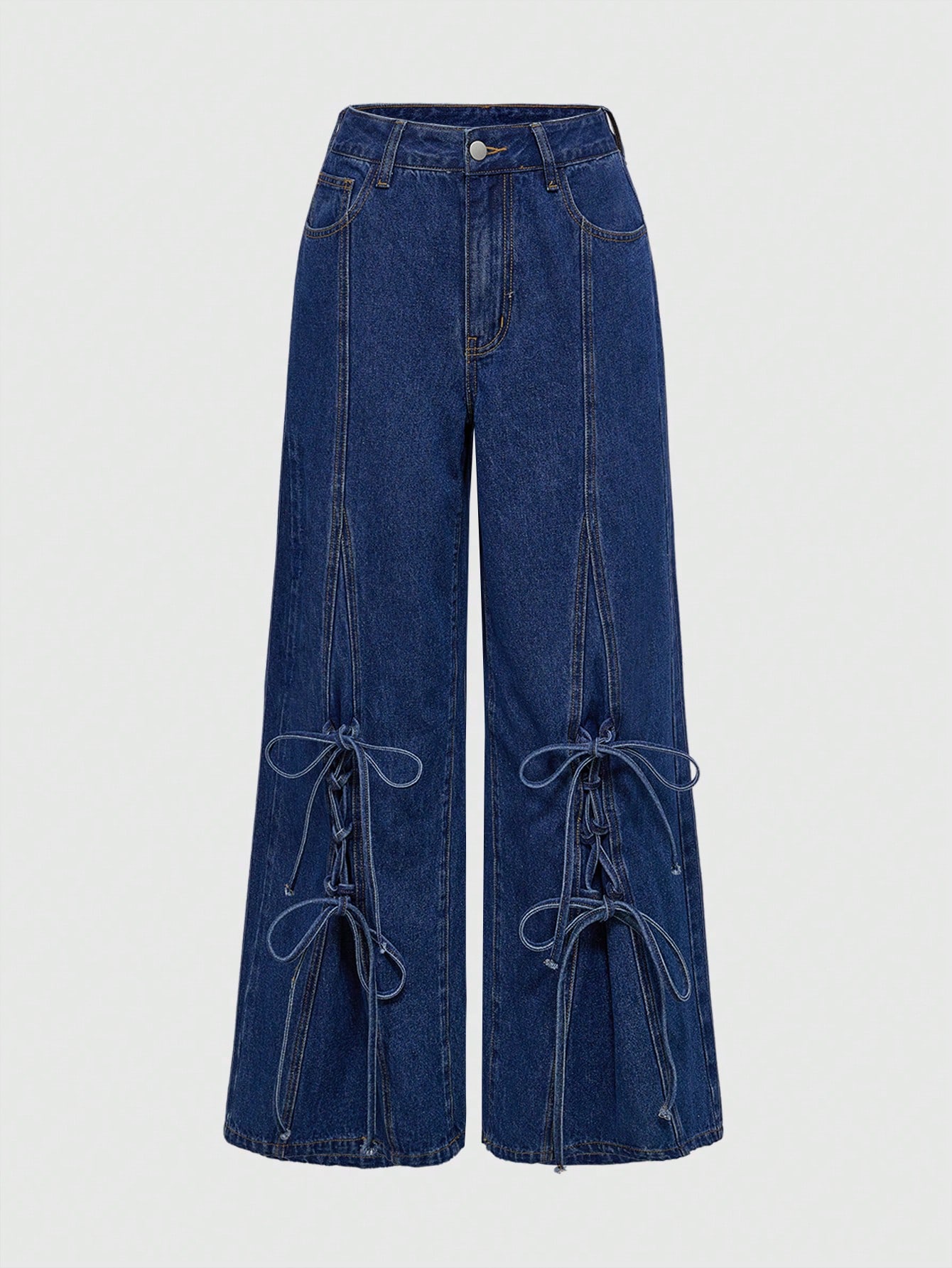 Kawaii جينز برجل واسع ربطة برباط مرتخي وجيب لطيف للنساء
