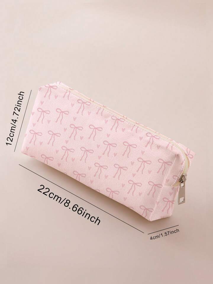 Kawaii علبة قلم لطيفة مطبوعة على الوجهين بنمط الفراشة الوردية والقلب، للمدرسة، العودة إلى المدرسة ، لوازم المدرسة