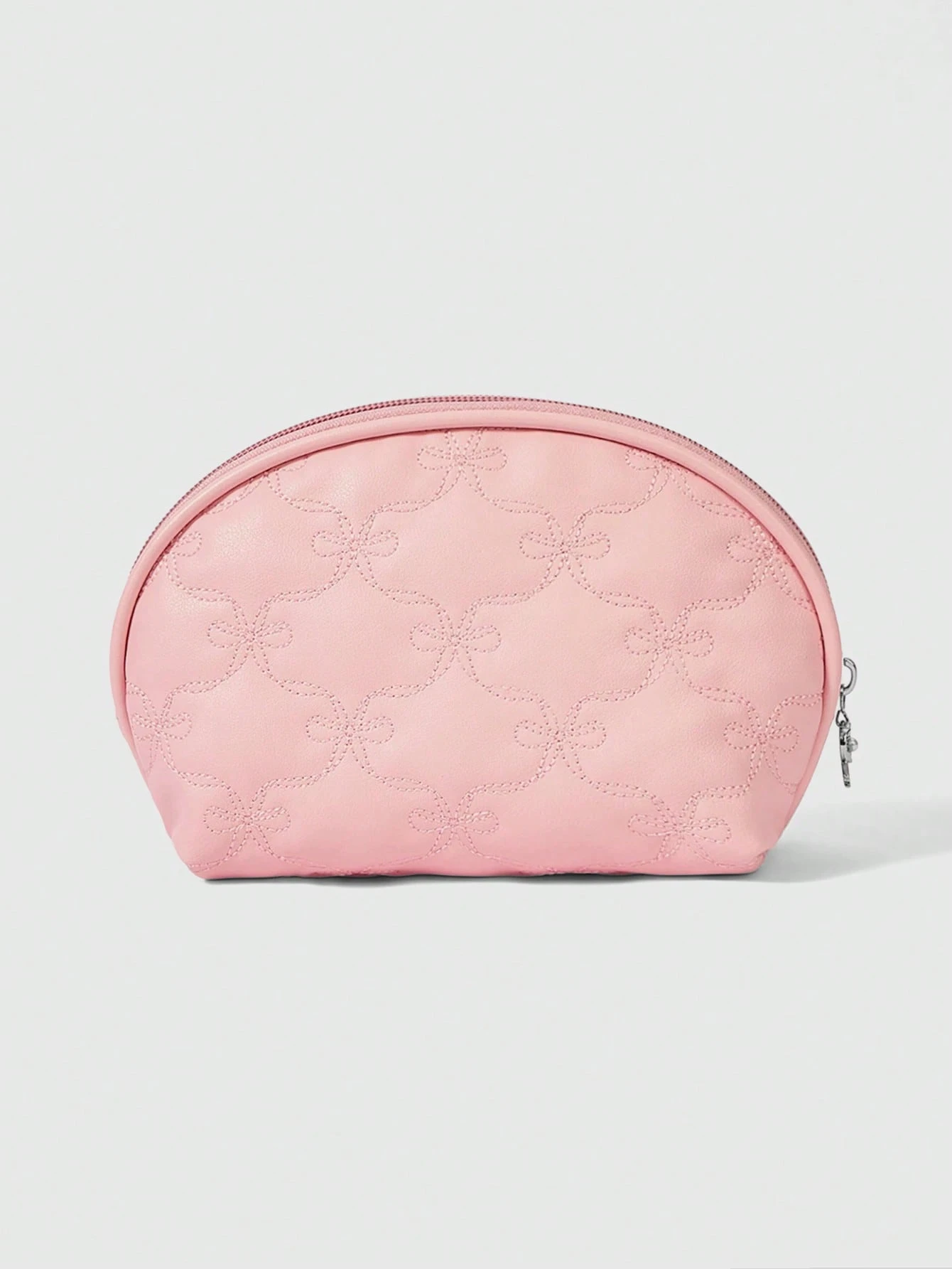 Kawaii حقيبة مستحضرات تجميل صغيرة محمولة مطرزة بفيونكة وردية، حقيبة مكياج للسفر