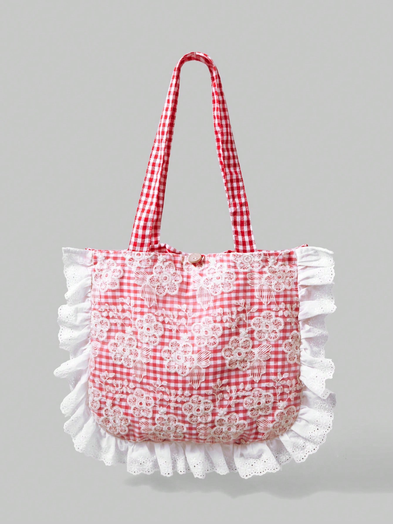 Kawaii حقيبة كتف نسائية وردية ذات نقش شرائط منقوشة وحاف من الدانتيل