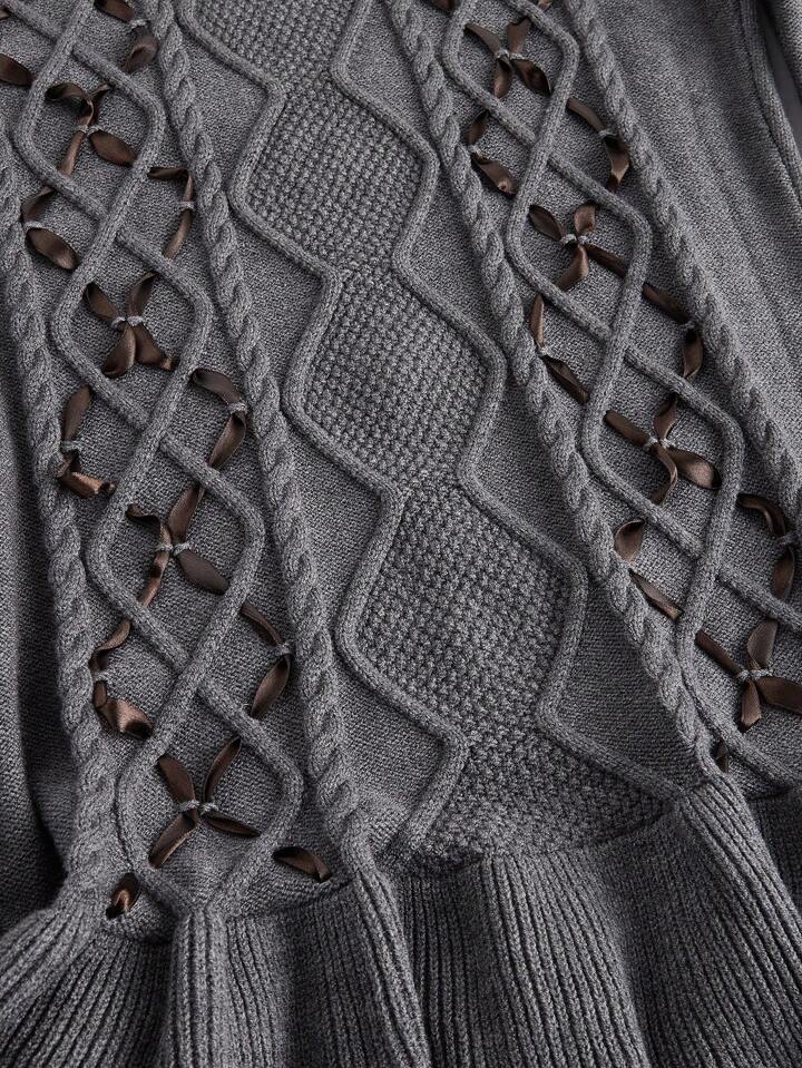 Kawaii فستان كنزة صوفية للنساء ذو خصر ضيق وتباين الدانتيل على الذيل، طراز قديم جميل