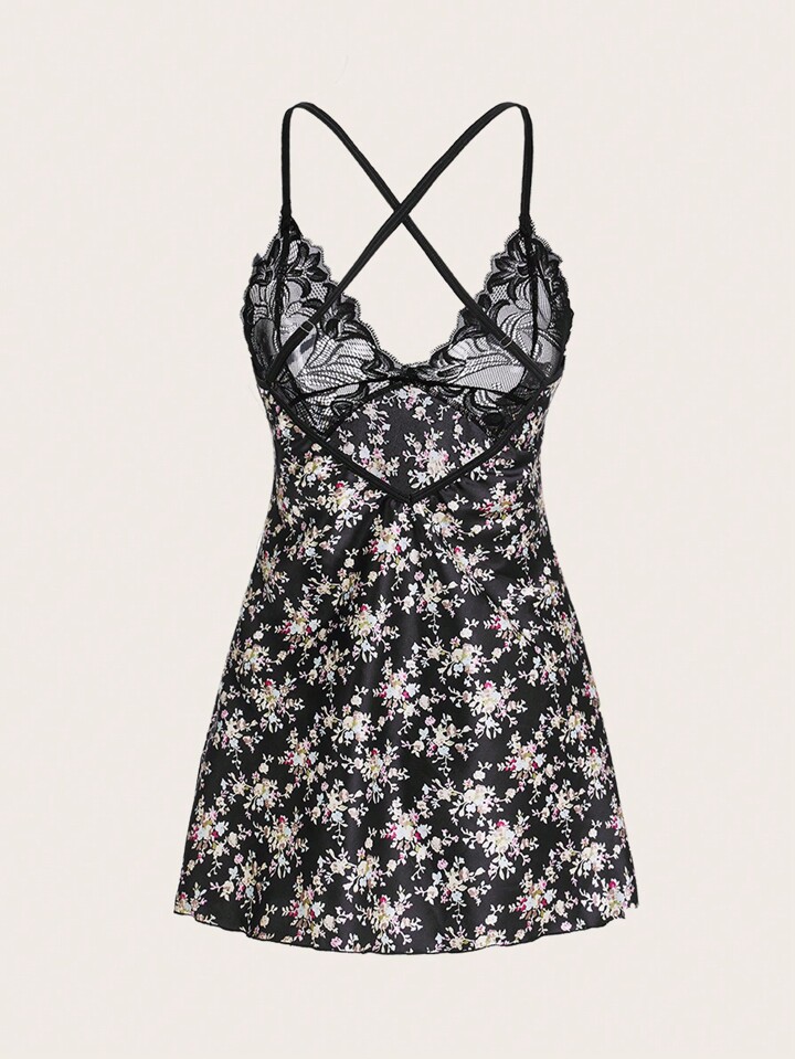 Kawaii شلحة بطباعة أزهار اقحوان دانتيل متباين اللون فستان النوم الجنسي