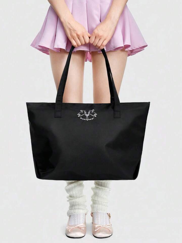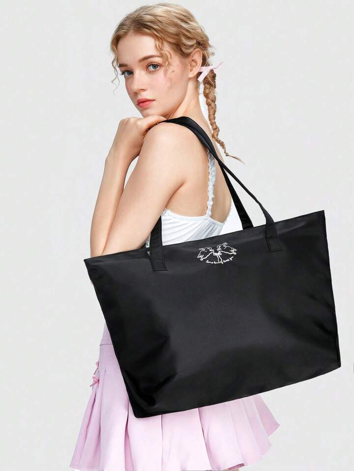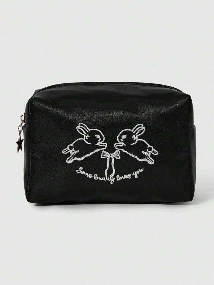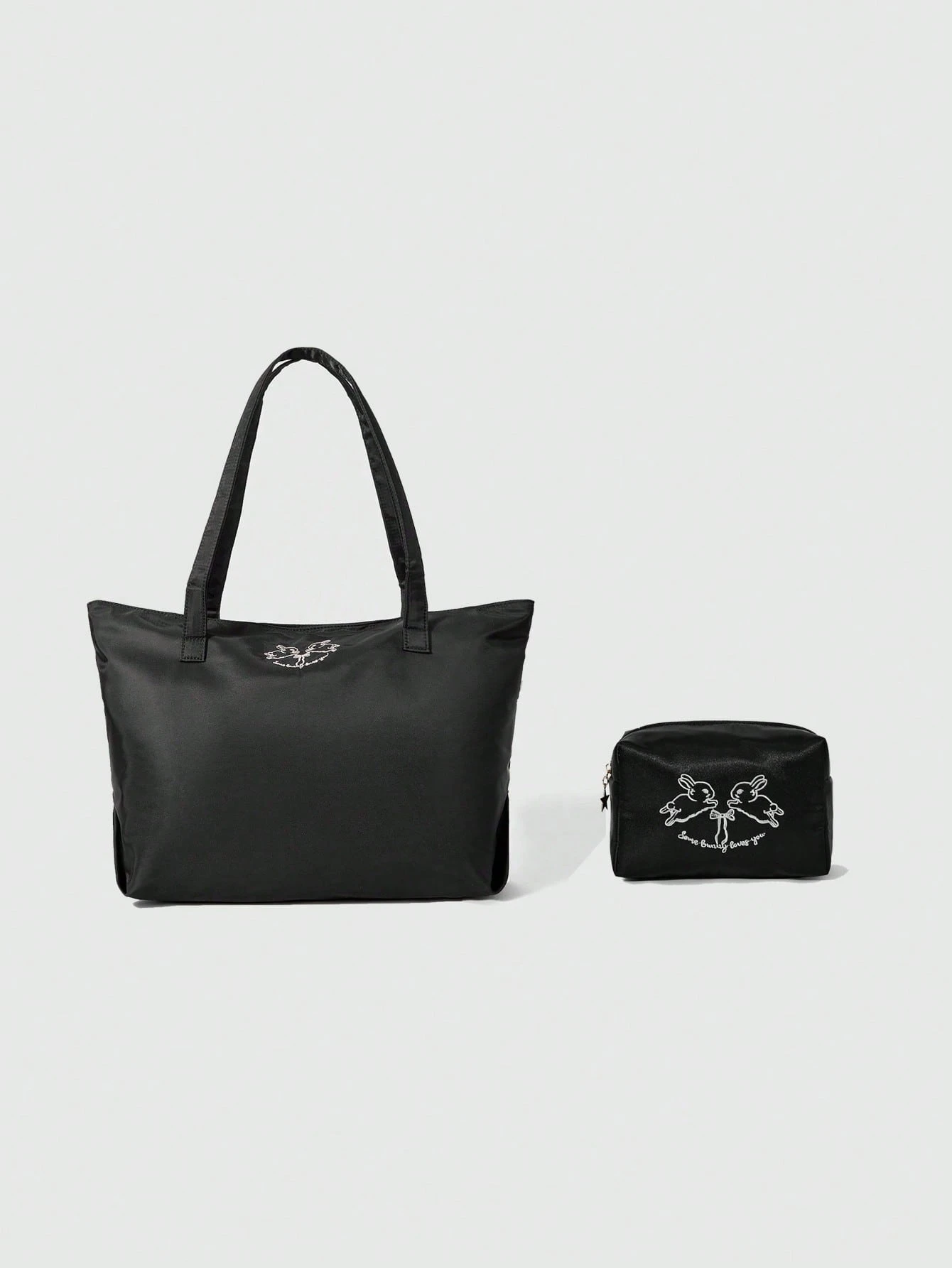Kawaii طقم حقيبة كتف سعة كبيرة ذات تطريز أرنب+ حقيبة مستحضرات تجميل ، من قماش أكسفورد عصري، حقيبة تسوق ، هدية