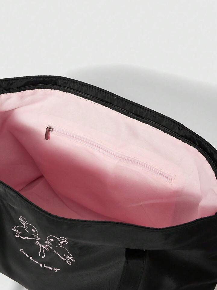 Kawaii حقيبة كتف سعة كبيرة ذات طراز أرنب الفصح المطرز 336027، من قماش أكسفورد الموضة