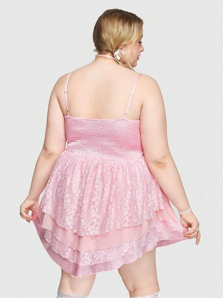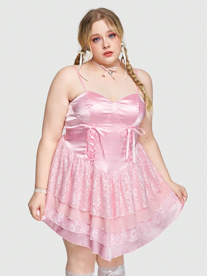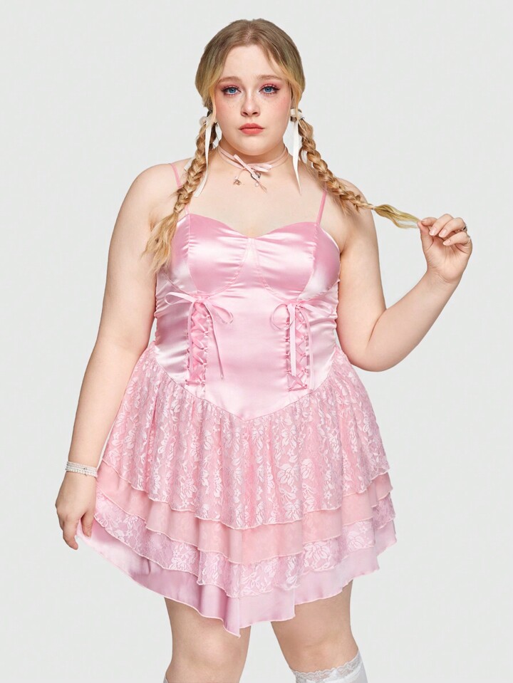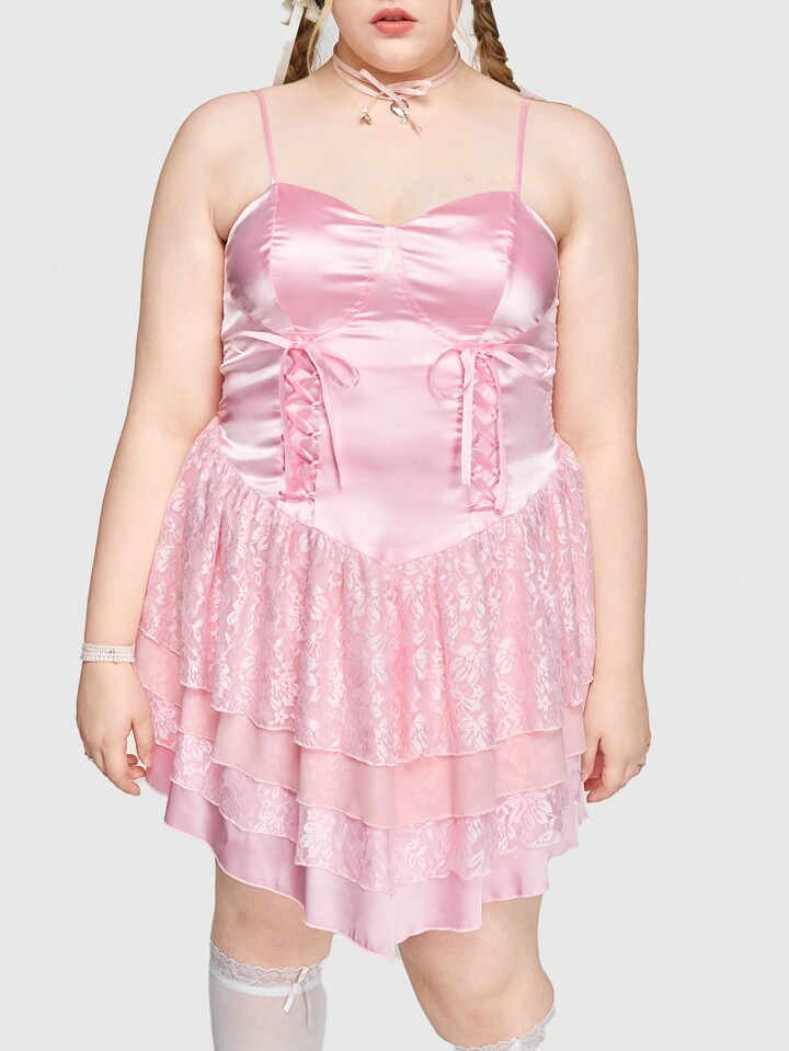 Kawaii فستان حريري بحمالات سباغيتي أنيق وجذاب من الدانتيل والشبك للحفلات والمناسبات بمقاس كبير