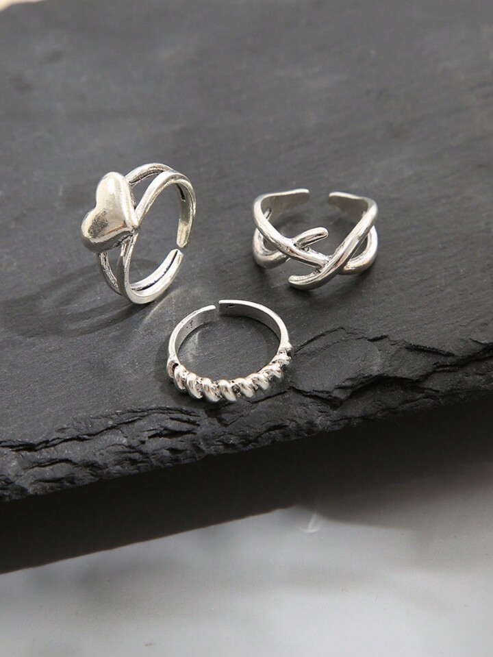 Kawaii طقم خواتم حب هندسي جديد أوروبي وأمريكي لإنترنت الشهرة بتصميم بسيط وأنيق ومفتوح على شكل صليب مكون من 3 قطع
