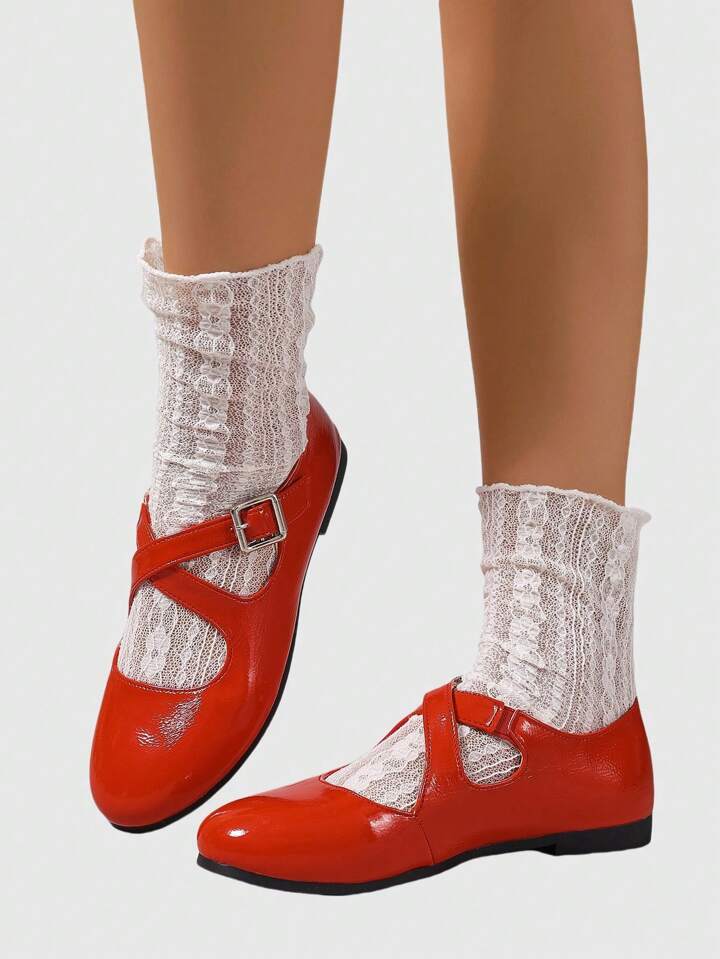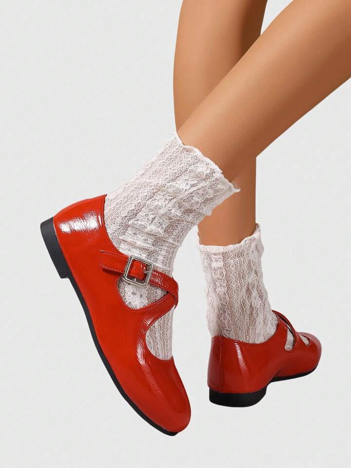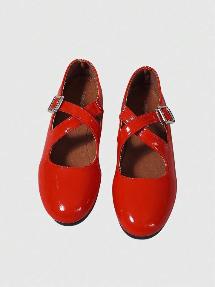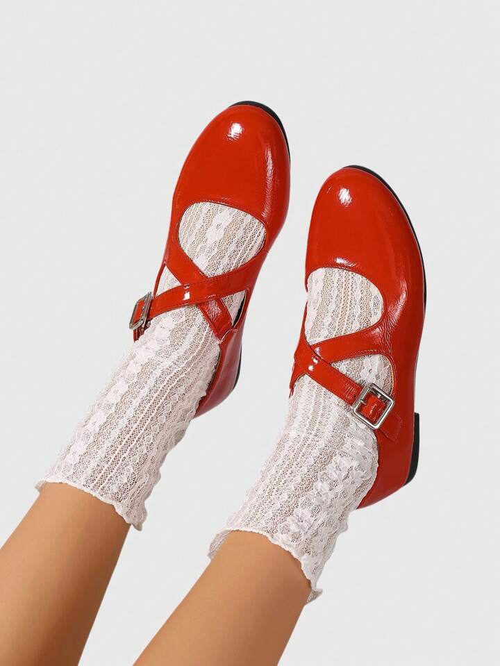 Kawaii أحذية بالرينا بطراز فرنسي قديم من الجلد البراءة الأحمر، بحزام متقاطع وتصميم إبزيم، أحذية جلدية حمراء على الطراز البريطاني الأنيق والمتعدد الاستخدامات للنساء