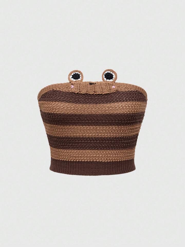 Kawaii ملابس علوية محبوكة مخططة على شكل ضفدع كاواييي، صيفية