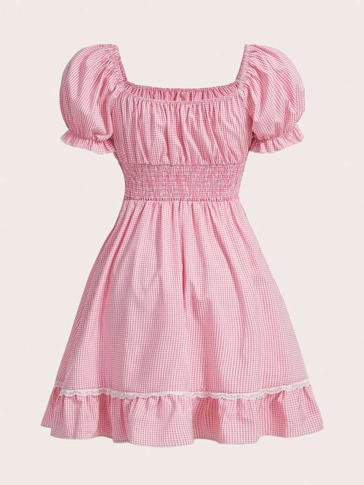 Kawaii فستان بنمط الحليب الجامي المخطط يتميز بأكمام فوف وحاشية مكشكشة