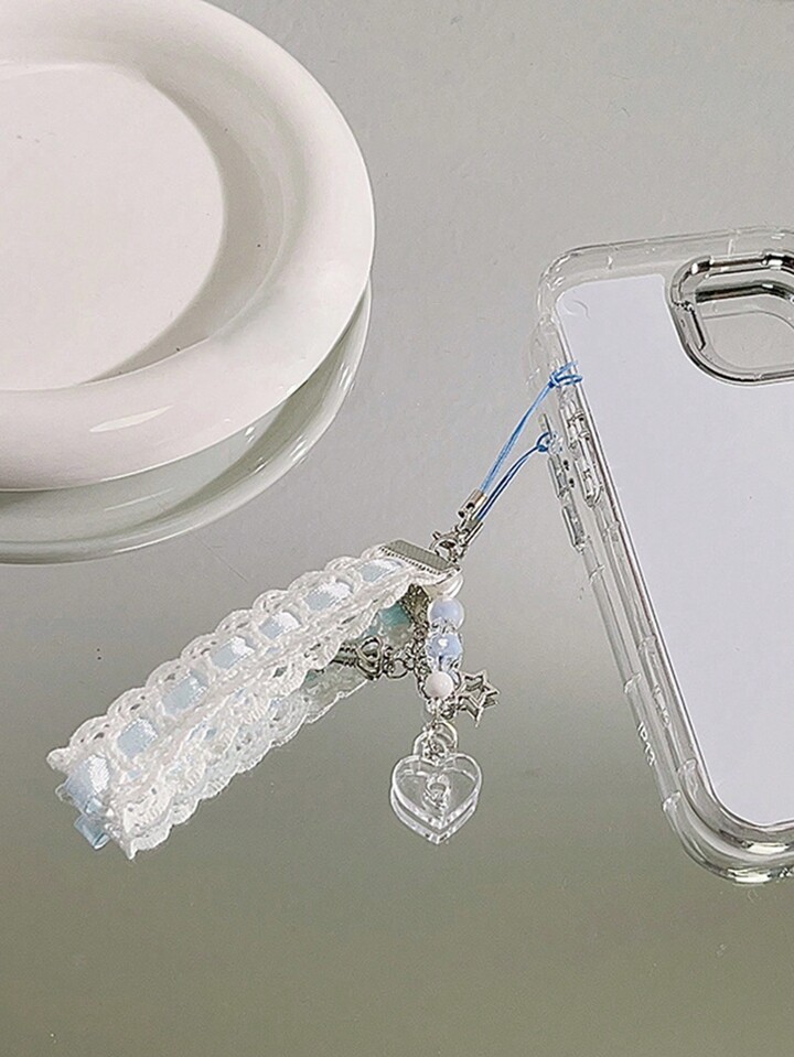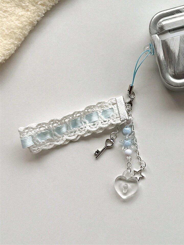 Kawaii حافظة هاتف محمول من الدانتيل المصنوع يدوياً Star Love Y2k لفتاة جميلة مزودة بسلسلة وحامل بطاقة وسماعة، ربطة حبل لحافظة هاتف محمول