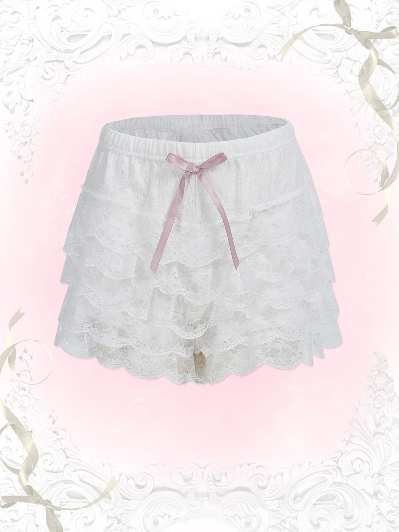 Kawaii شورت نوم مزين بفيونكة مع تطريز دانتيل في تباين الألوان، للمدرسة