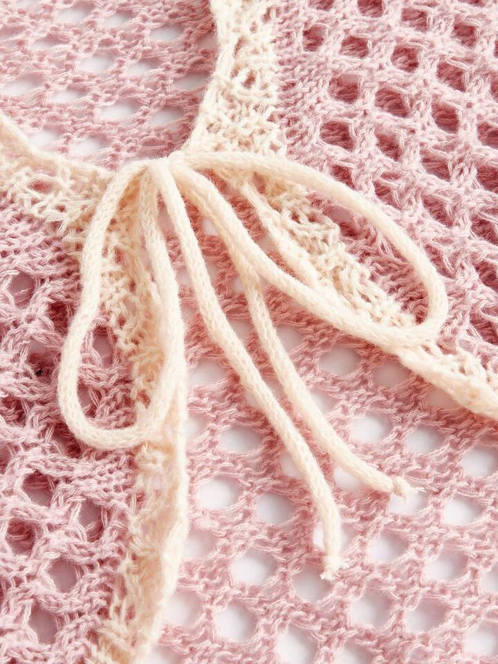 Kawaii كارديجان قص مجوف ربطة امامية